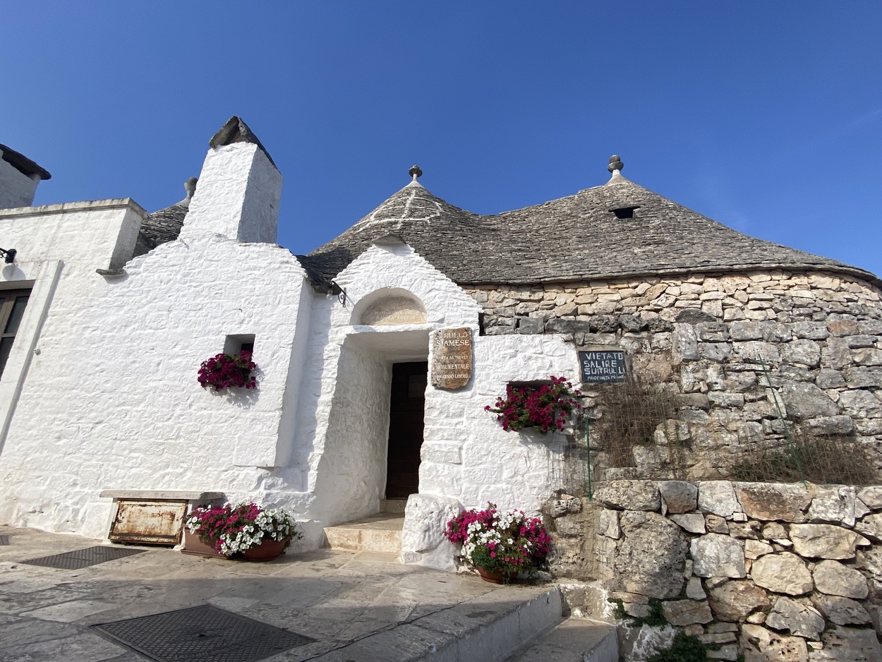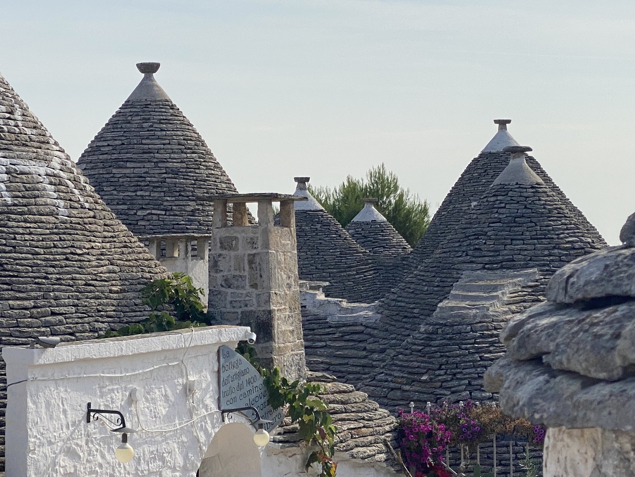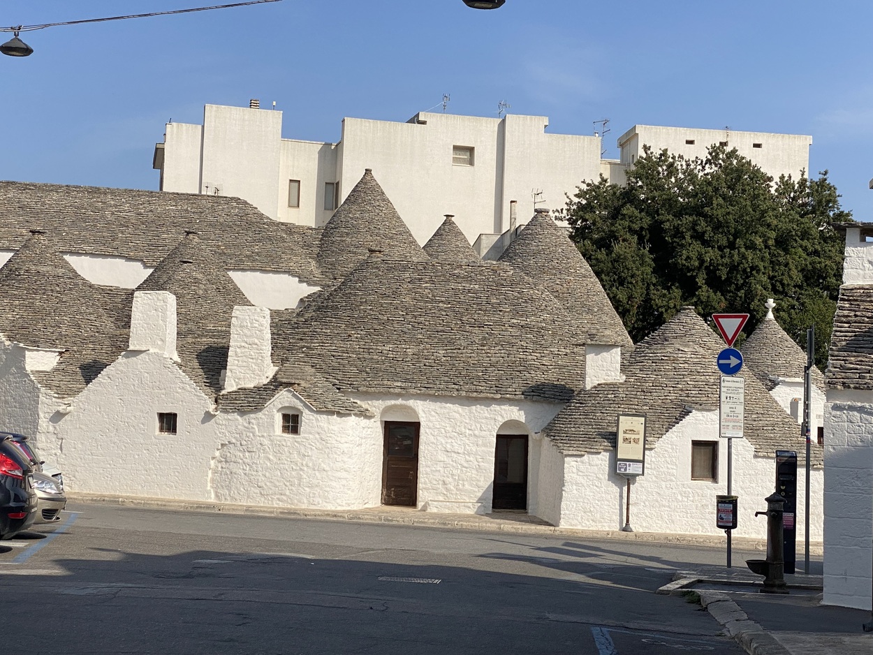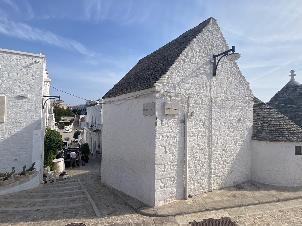 Рядом находится исторический Hotel Dei Trulli с прекрасными отзывами на booking. Это первый местный отель, который принял туристов летом 1960 года. Изначально комплекс из 25 трулло, построен для жителей via Monte Nero, позже преобразован в отель. Каждый трулло здесь — это отдельные апартаменты, оформленные в традиционном стиле: с гостиной, спальнями, ванными комнатами, плетёными стульями и каминами. Внешний дворик и сад создают атмосферу деревенской жизни.