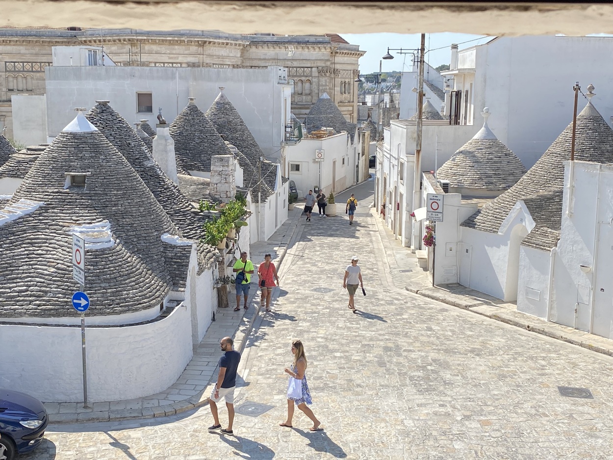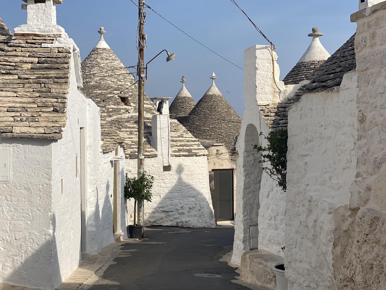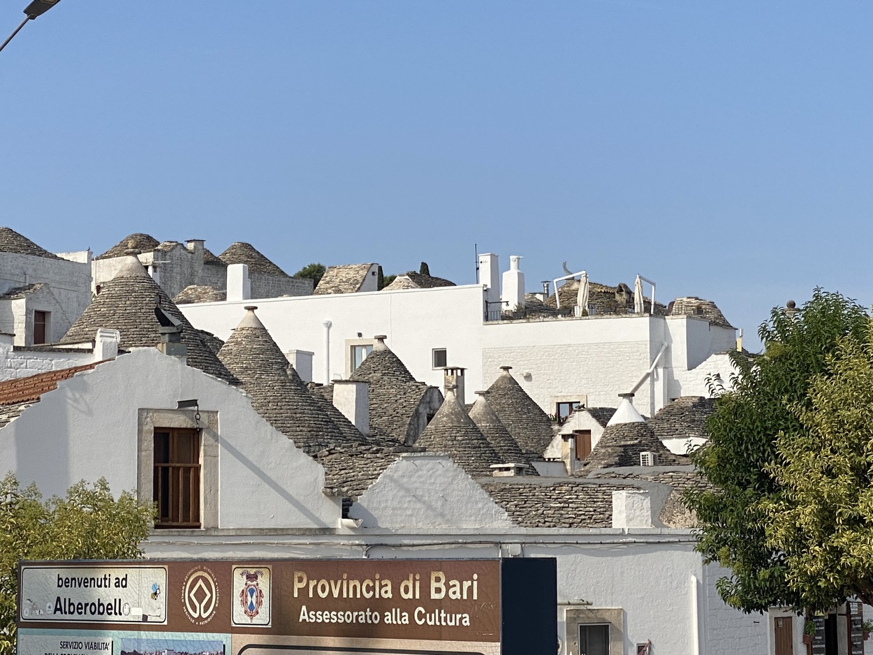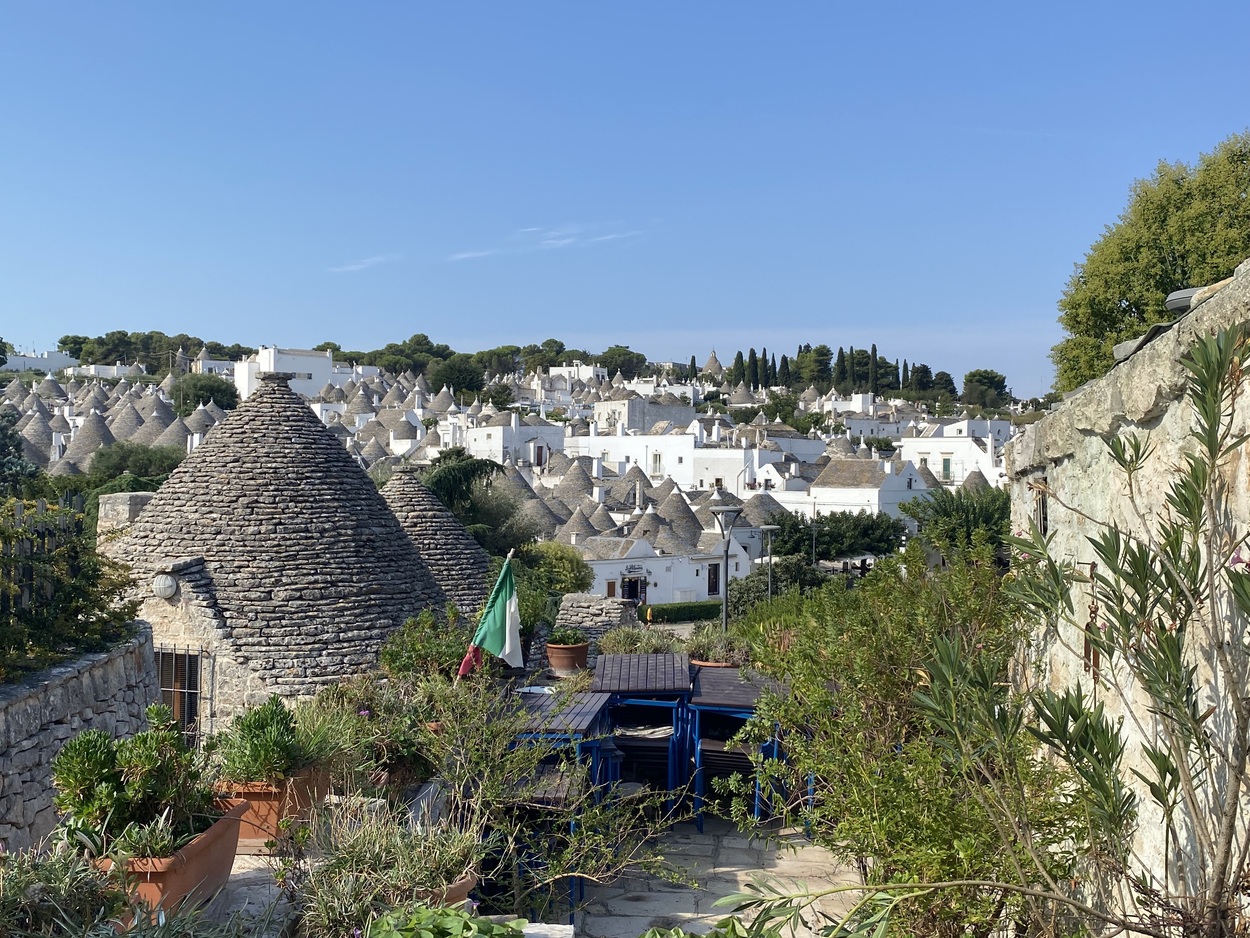 Рядом находится исторический Hotel Dei Trulli с прекрасными отзывами на booking. Это первый местный отель, который принял туристов летом 1960 года. Изначально комплекс из 25 трулло, построен для жителей via Monte Nero, позже преобразован в отель. Каждый трулло здесь — это отдельные апартаменты, оформленные в традиционном стиле: с гостиной, спальнями, ванными комнатами, плетёными стульями и каминами. Внешний дворик и сад создают атмосферу деревенской жизни.
