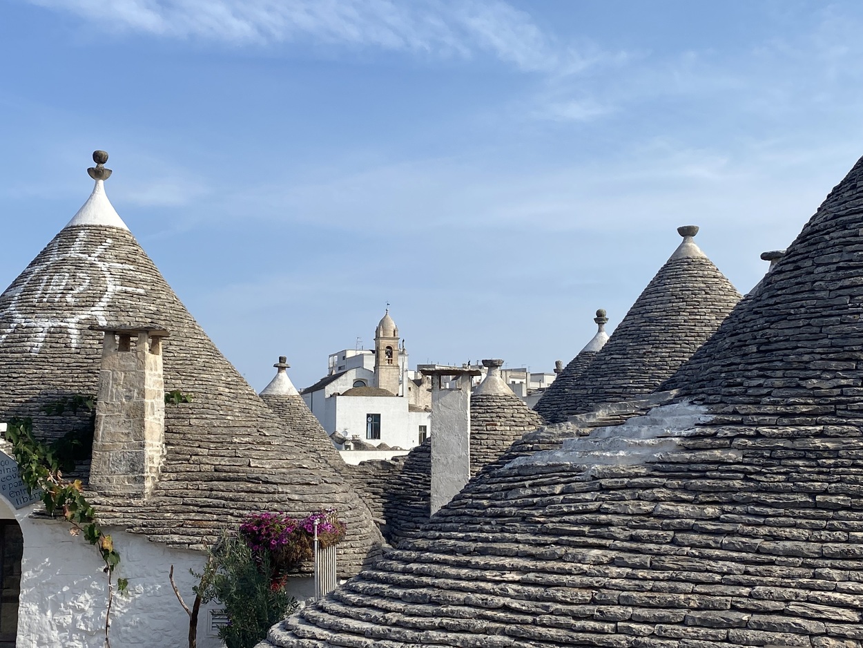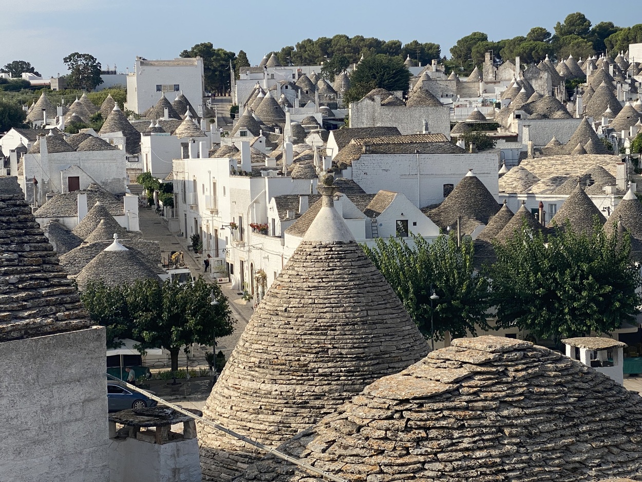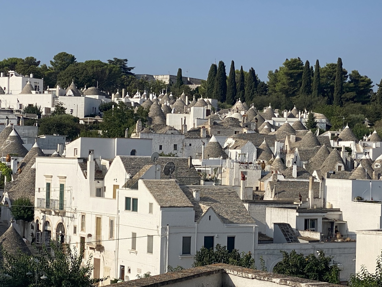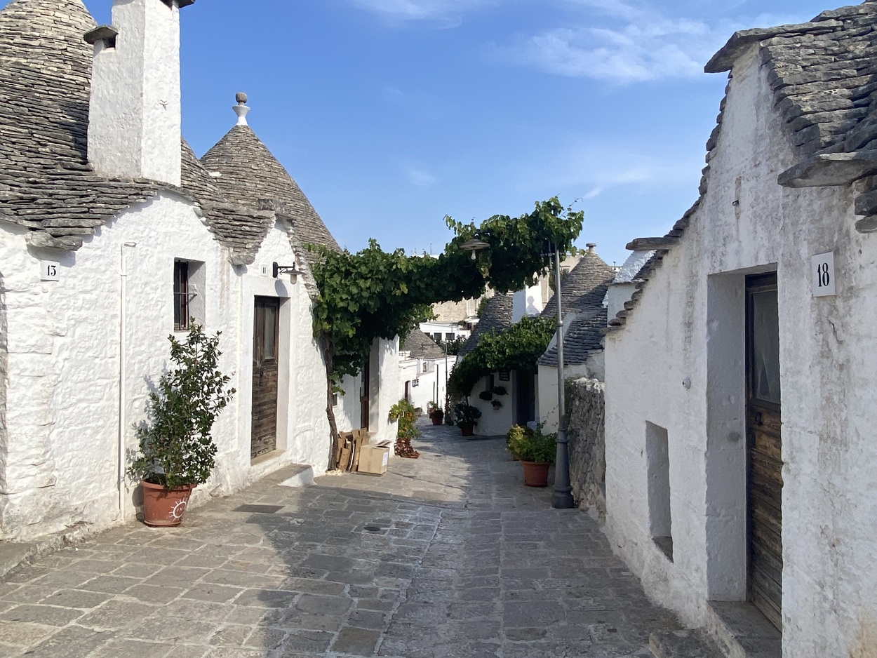 Рядом находится исторический Hotel Dei Trulli с прекрасными отзывами на booking. Это первый местный отель, который принял туристов летом 1960 года. Изначально комплекс из 25 трулло, построен для жителей via Monte Nero, позже преобразован в отель. Каждый трулло здесь — это отдельные апартаменты, оформленные в традиционном стиле: с гостиной, спальнями, ванными комнатами, плетёными стульями и каминами. Внешний дворик и сад создают атмосферу деревенской жизни.