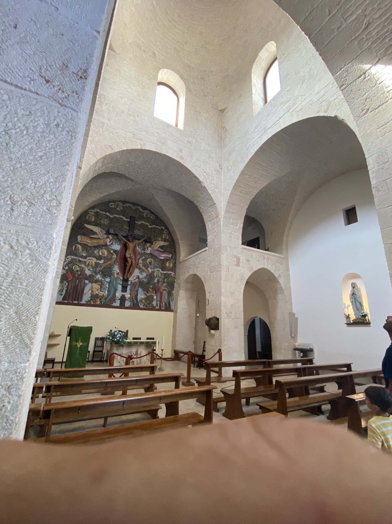 Поднявшись на холм, в конце via Monte san Michele оказываемся у церкви св. Антония необычной формы Antonio Lippolis (chiesa a trullo), которая была построена очень быстро, всего за четырнадцать месяцев и освящена 13 июня 1927 года. Такая скорость объясняется тем, что в регионе в начале ХХ века распространилась пропаганда протестантизма. Дон Антонио Липполис и священник Джованни Перрини были очень обеспокоены этим и инициировали создание места для молитвы. Место для храма было подарено благотворительницей.