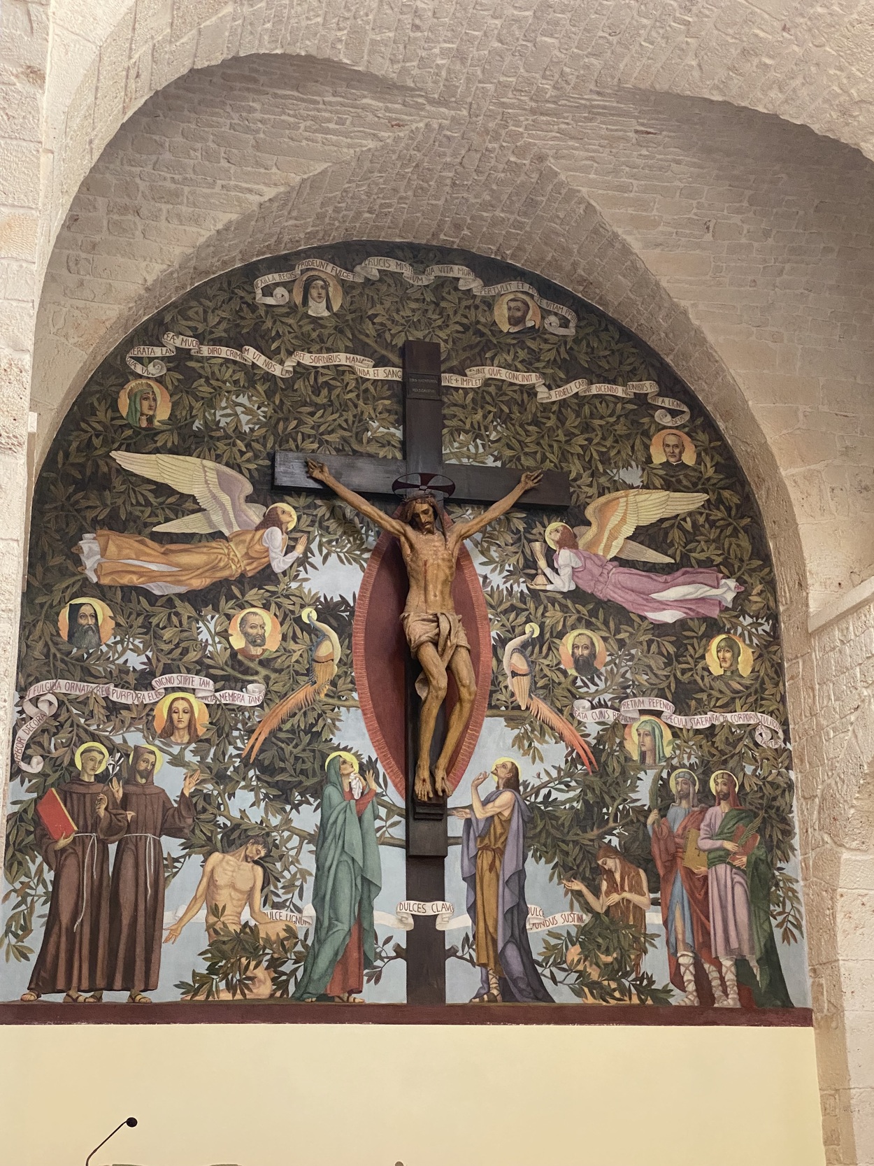 Стартуем от Piazza del Popolo, рядом находится церковь Saintа Lucia (Santissimo Sakramento), около нее оливковое дерево, привезенное из Иерусалима и посаженное в благодарность жителям общины за помощь евреям во время Холокоста. Отсюда открывается великолепный вид на район Monti.