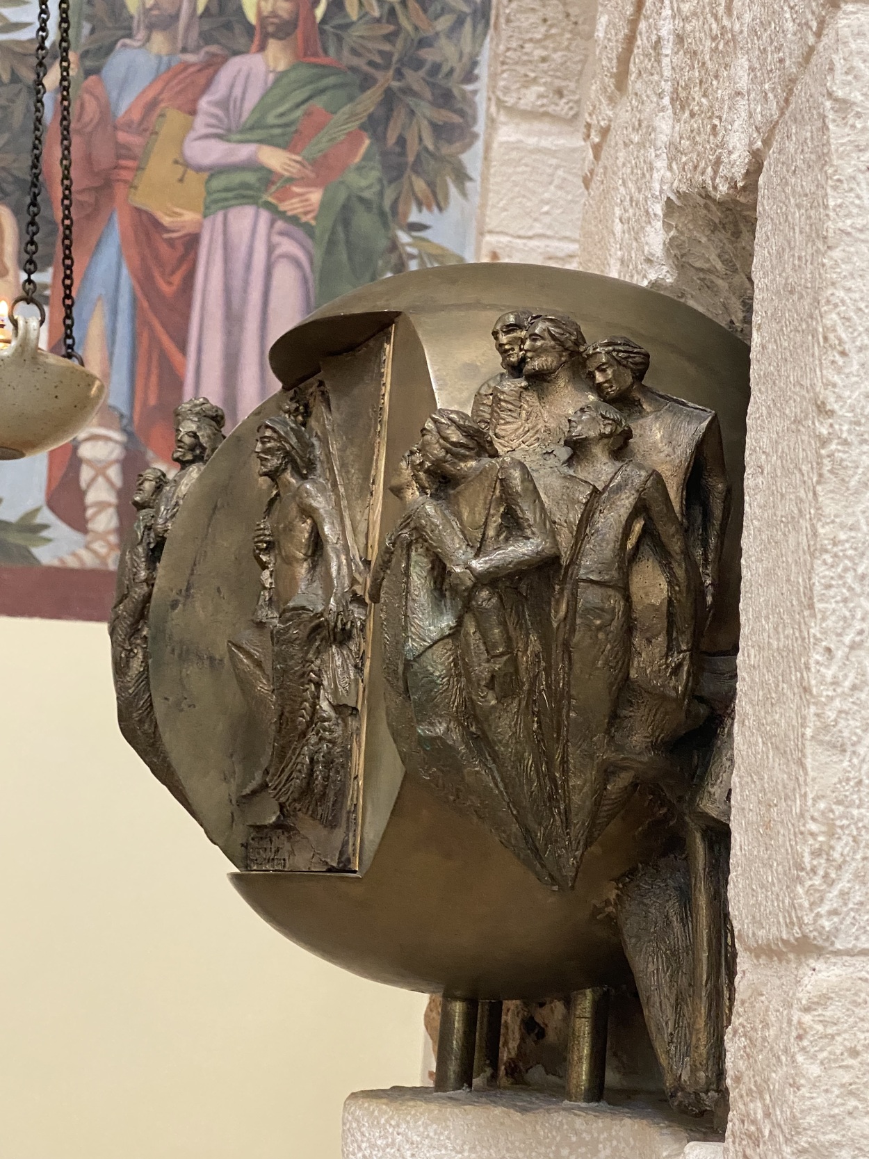 Семисвечник (не еврейский, а христианский) напоминает о семи Таинствах против семи смертных грехов, которые ниспровергают души.