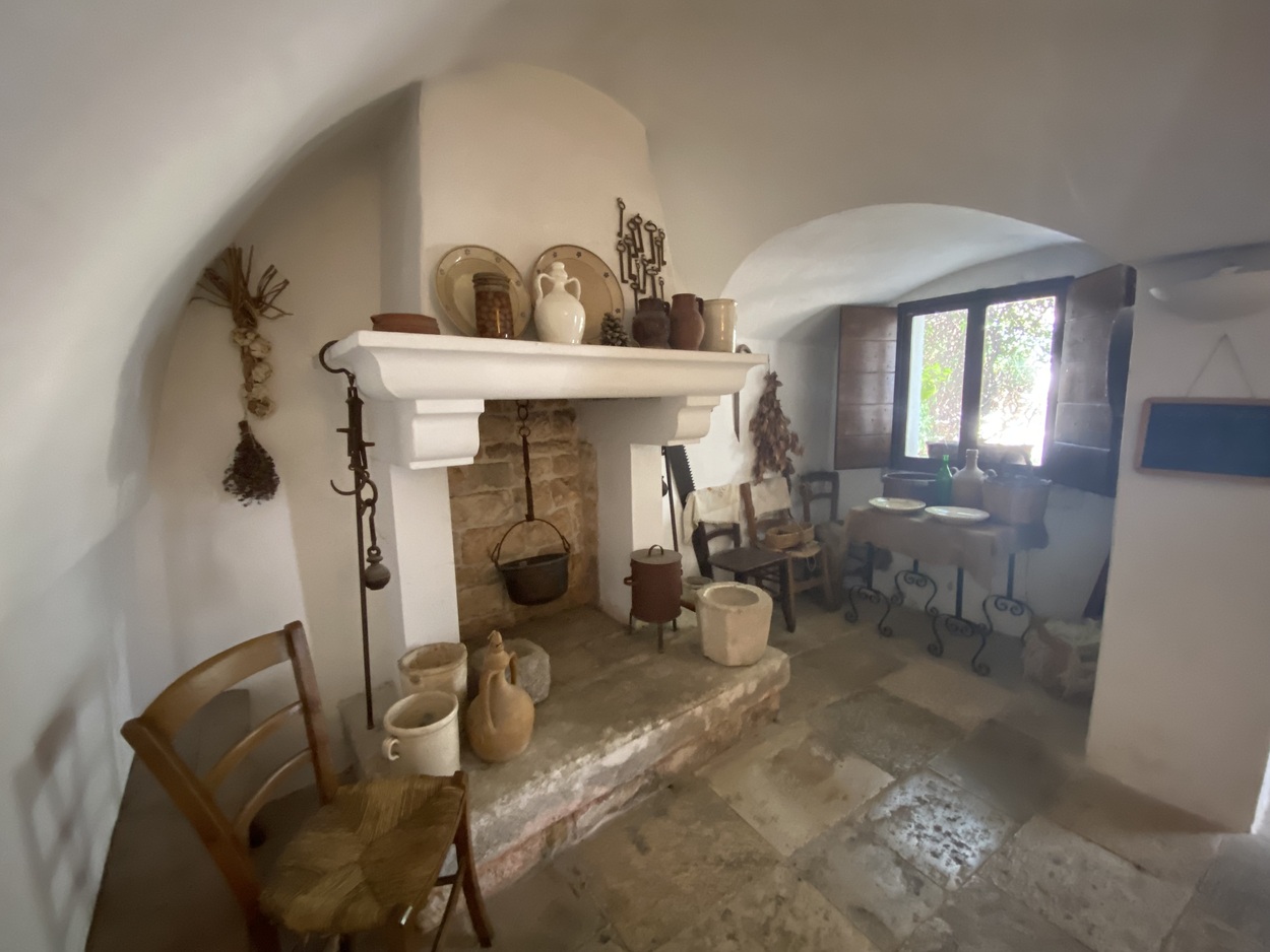Сейчас тут музей, и устройство трулло можно увидеть своими глазами. На сайте музея есть краткое описание всех комнат. В доме имеются: столовая,главная кухня с кладовой, малая кухня, лестница,первый этаж, спальня. Сайт музея Трулло Сорвано