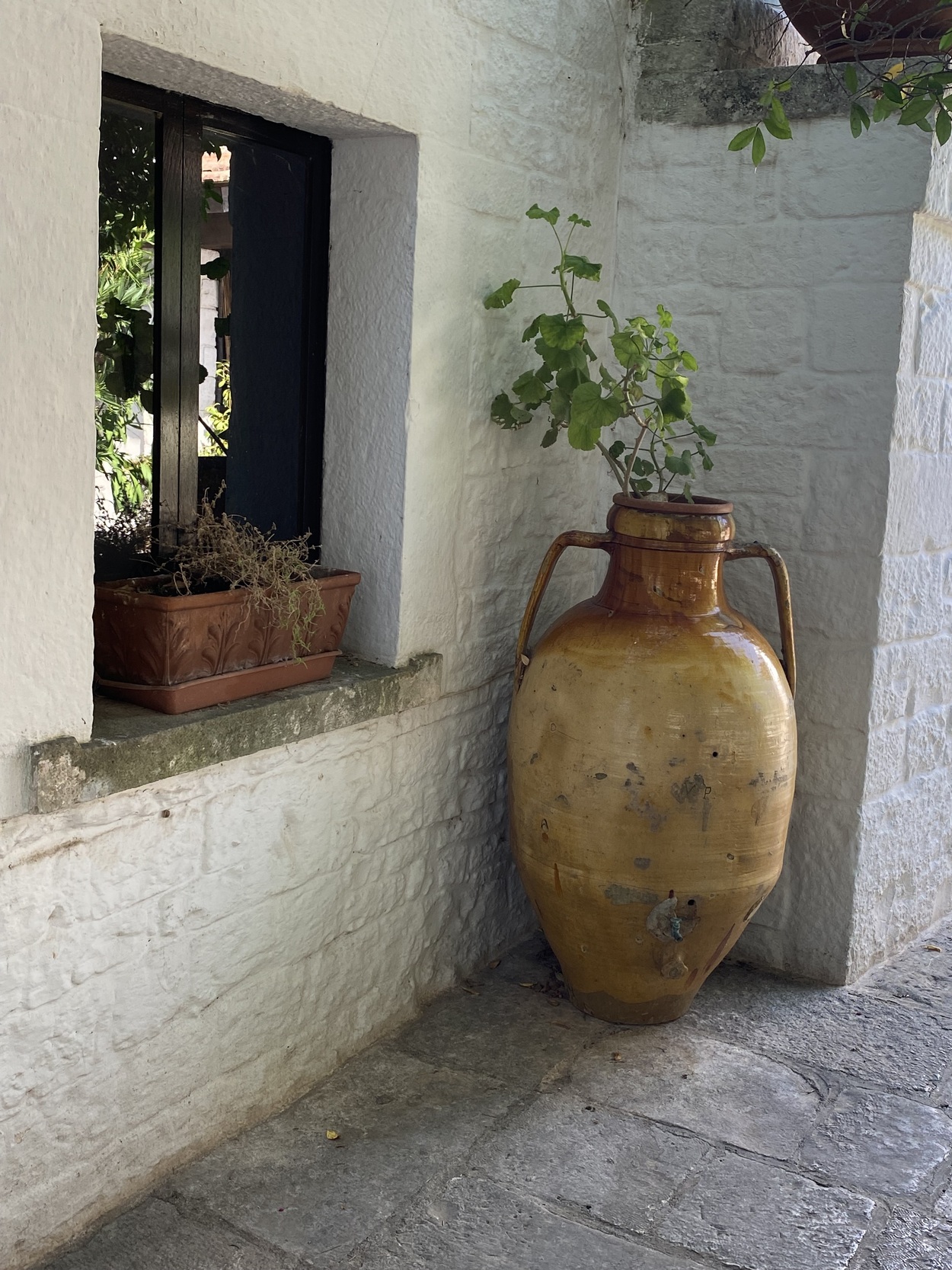 В декоре трулли встречаются растения (пальмы и цветы в вазах) и другие символы, например, рог изобилия (признак процветания), переплетенные сердца (символ любви), звезда (напоминание о небесном спасении) и ангел (символ божественного покровительства). Эти не просто украшения, а выражение более глубокого значения, объединяющего священную и мирскую символику.