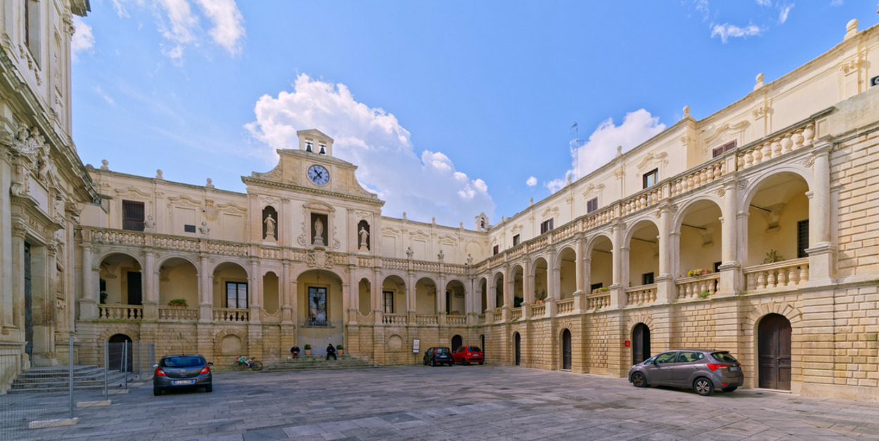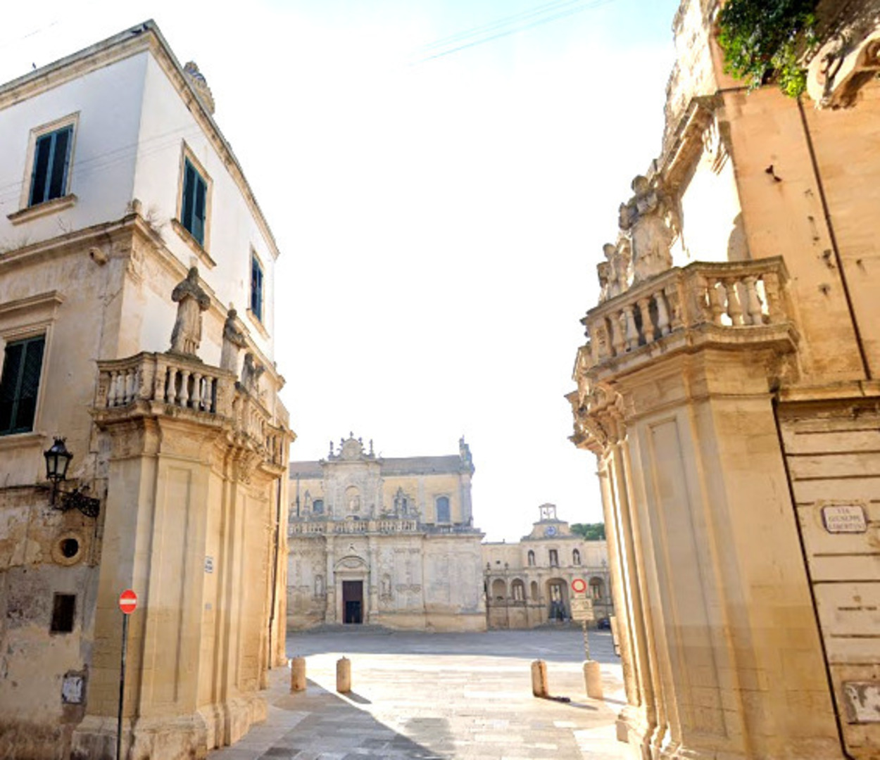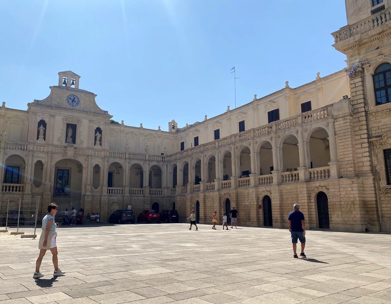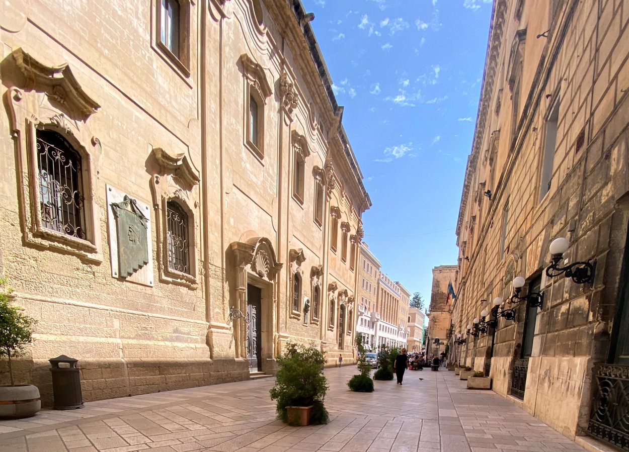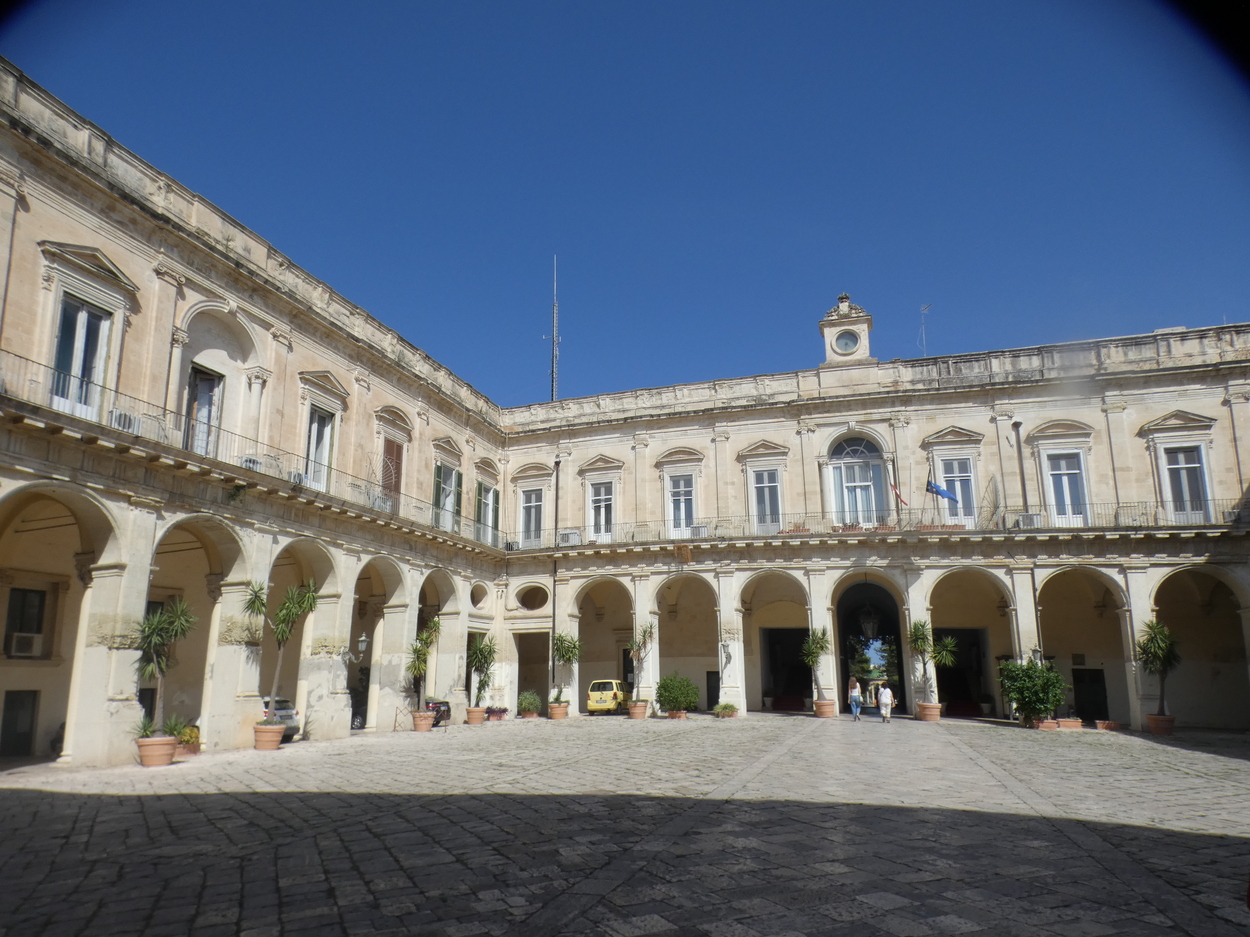 Выходим из парка в сторону Via XXV Luglio, за ней виднеется Palazzo dei Celestini (Provincia di Lecce), проходим через торжественный двор и оказываемся в самом сердце города.