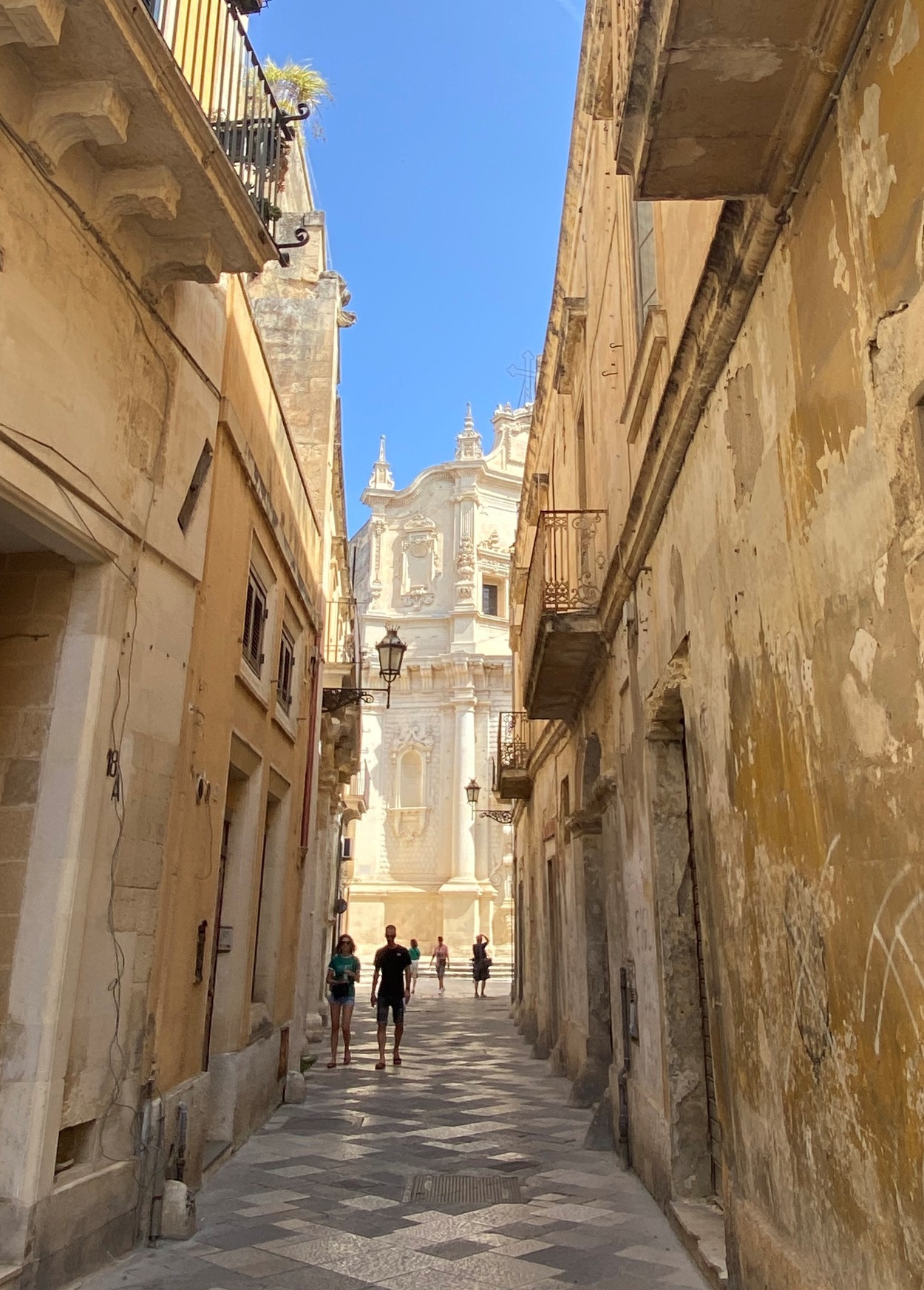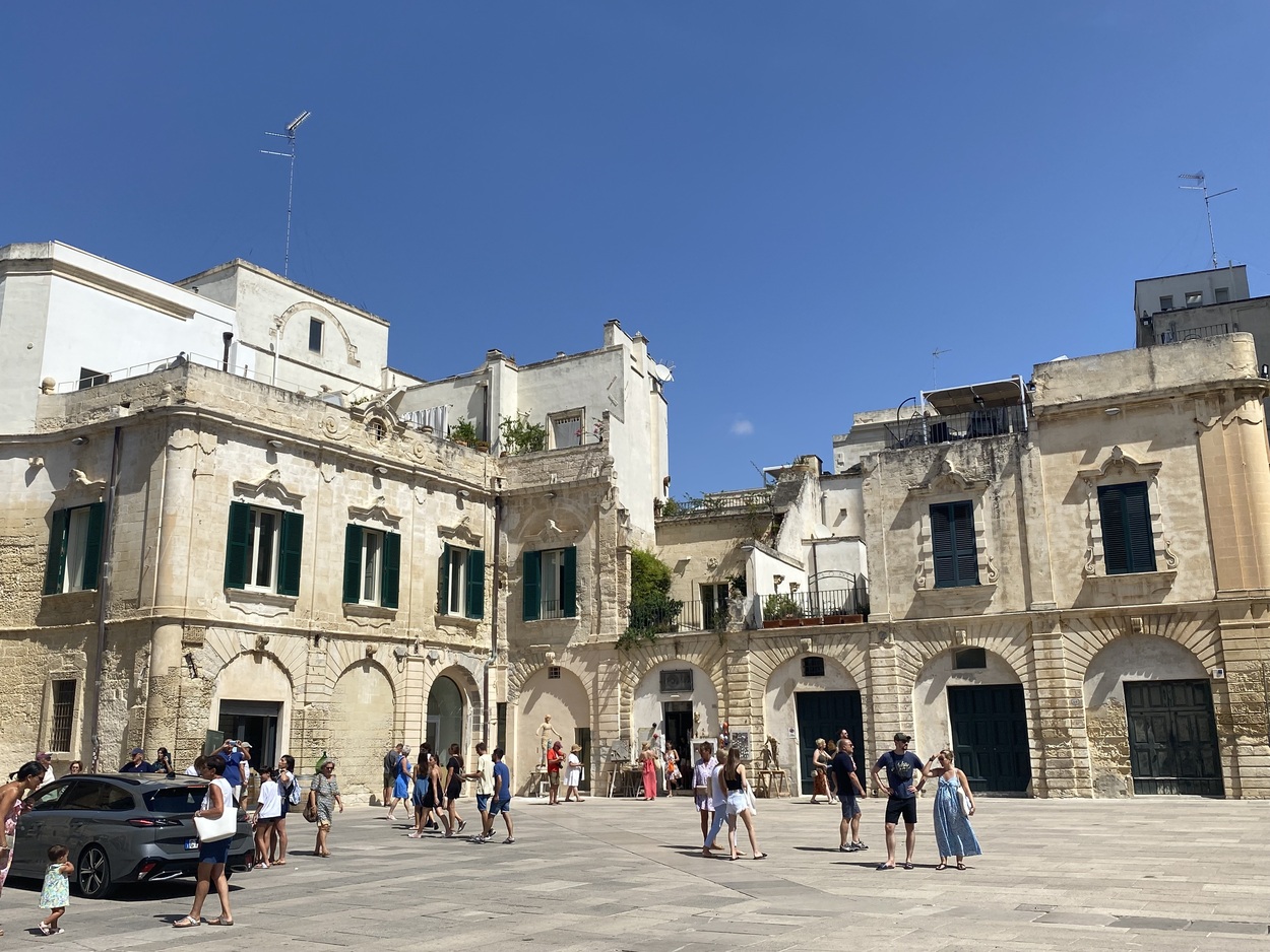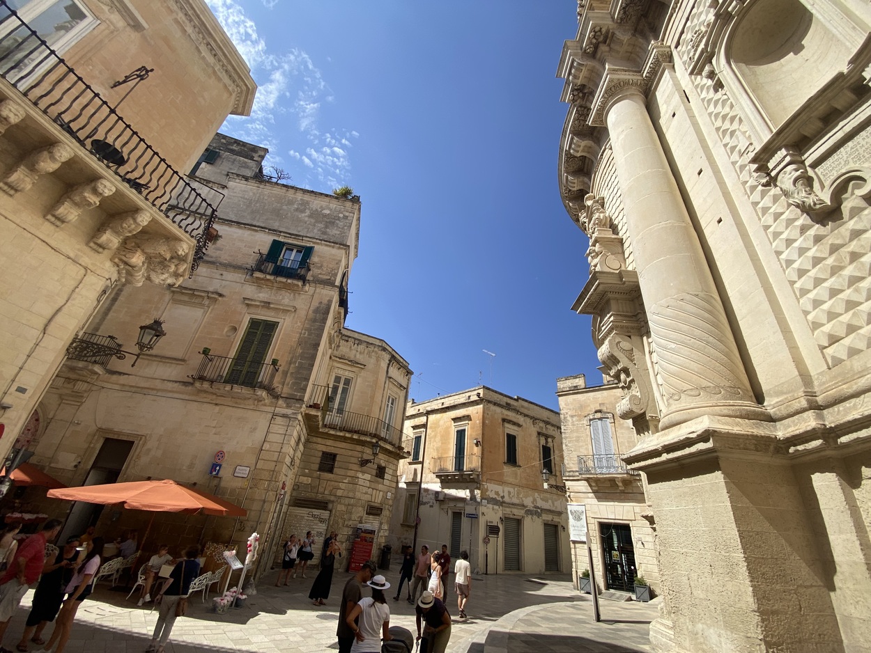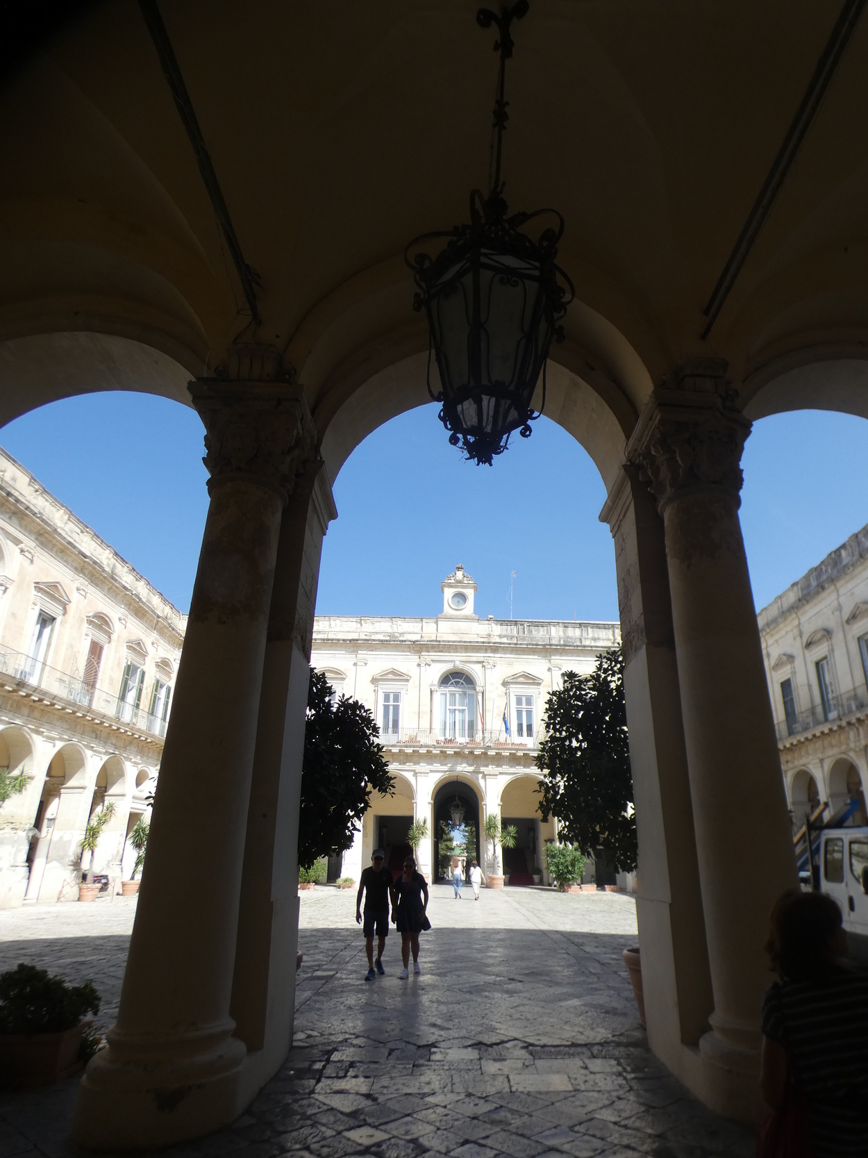 Выходим из парка в сторону Via XXV Luglio, за ней виднеется Palazzo dei Celestini (Provincia di Lecce), проходим через торжественный двор и оказываемся в самом сердце города.