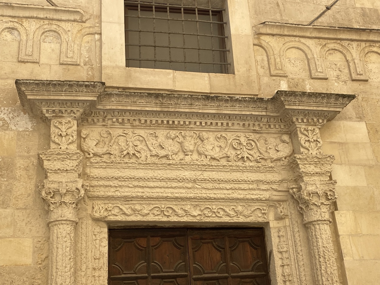 Интерес представляет огромная бронзовая дверь. Она создана в 2000 году скульптором Армандо Маррокко (одного из величайших итальянских скульпторов, также автора бронзовых дверей церкви святилища Леуки). Барельефы на двери рассказывают о важных исторических событиях города, в частности о визите в Лечче Иоанна Павла II.