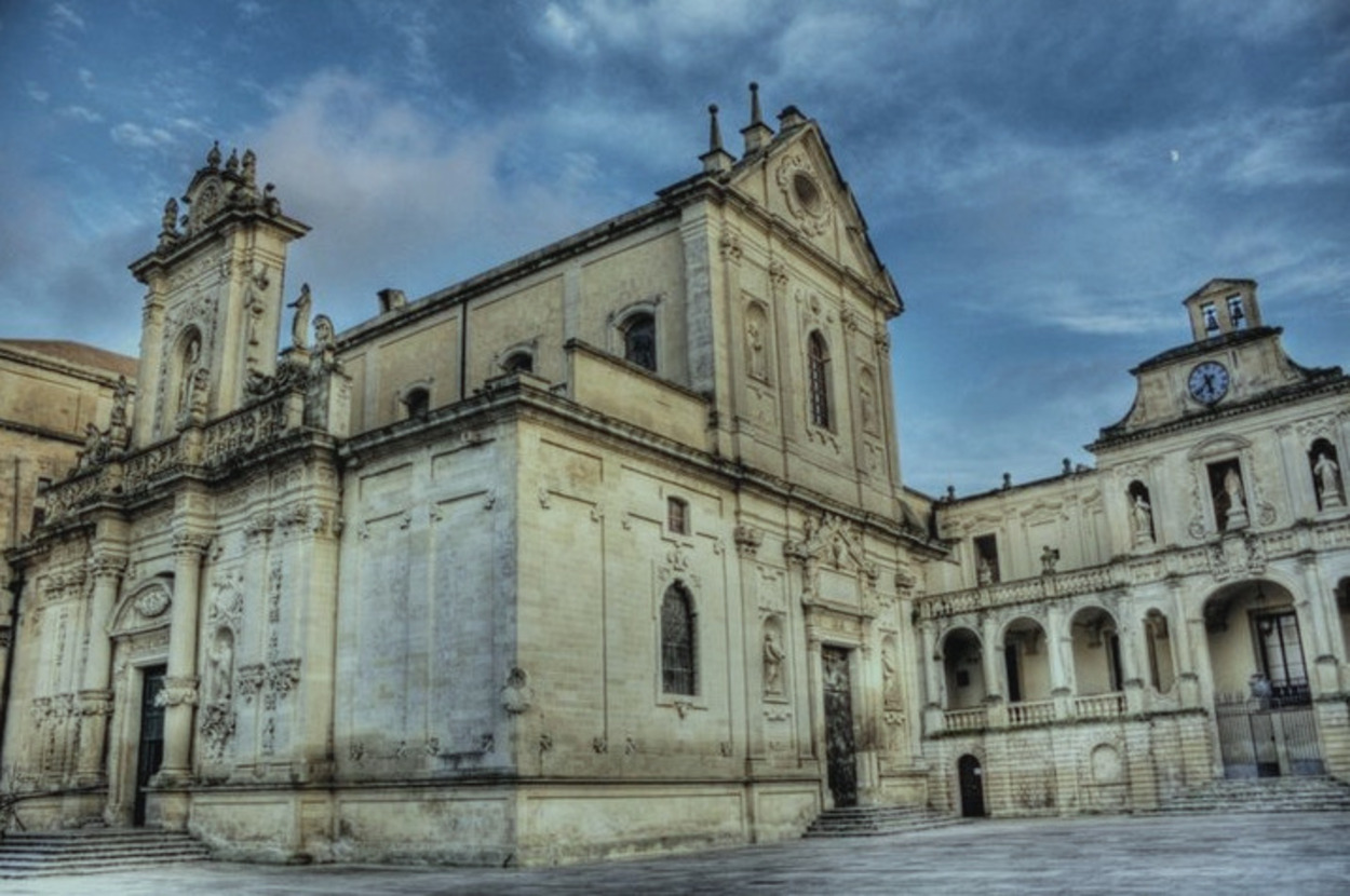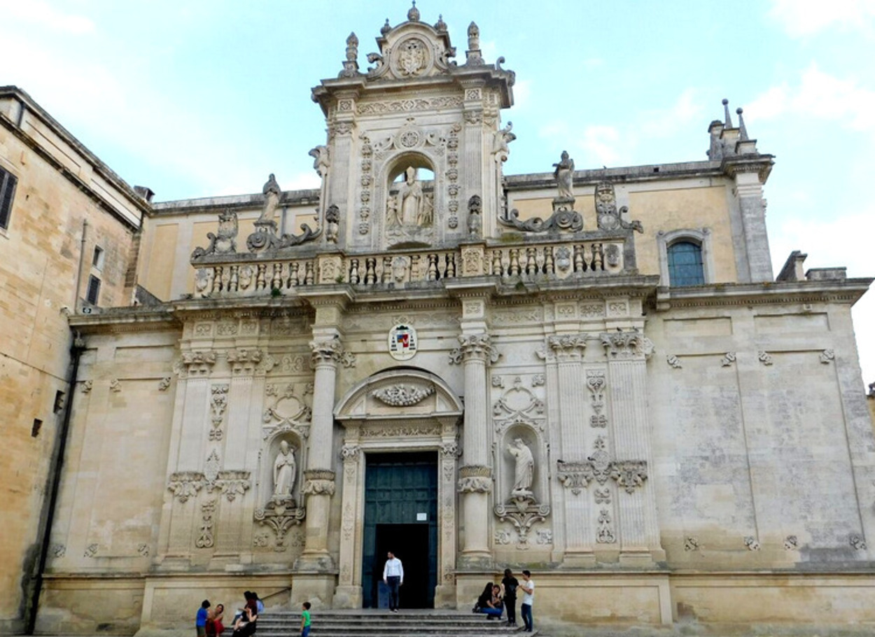 Кафедральный собор (Cattedrale di Maria Santissima Assunta e Sant'Oronzo) был построен в 1144 году, перестроен в 1230, восстановлен 1659 году знакомым уже нам Джузеппе Цимбало по указанию епископа Луиджи Паппакода.