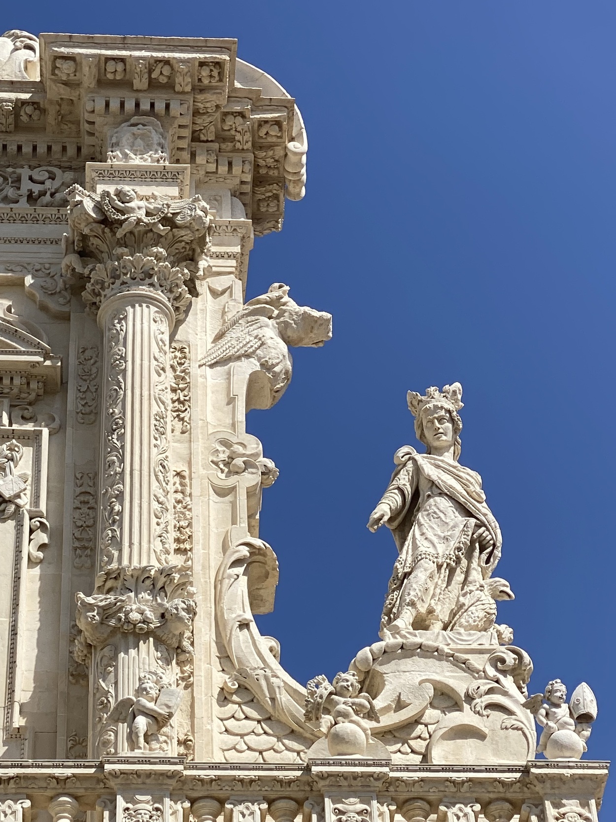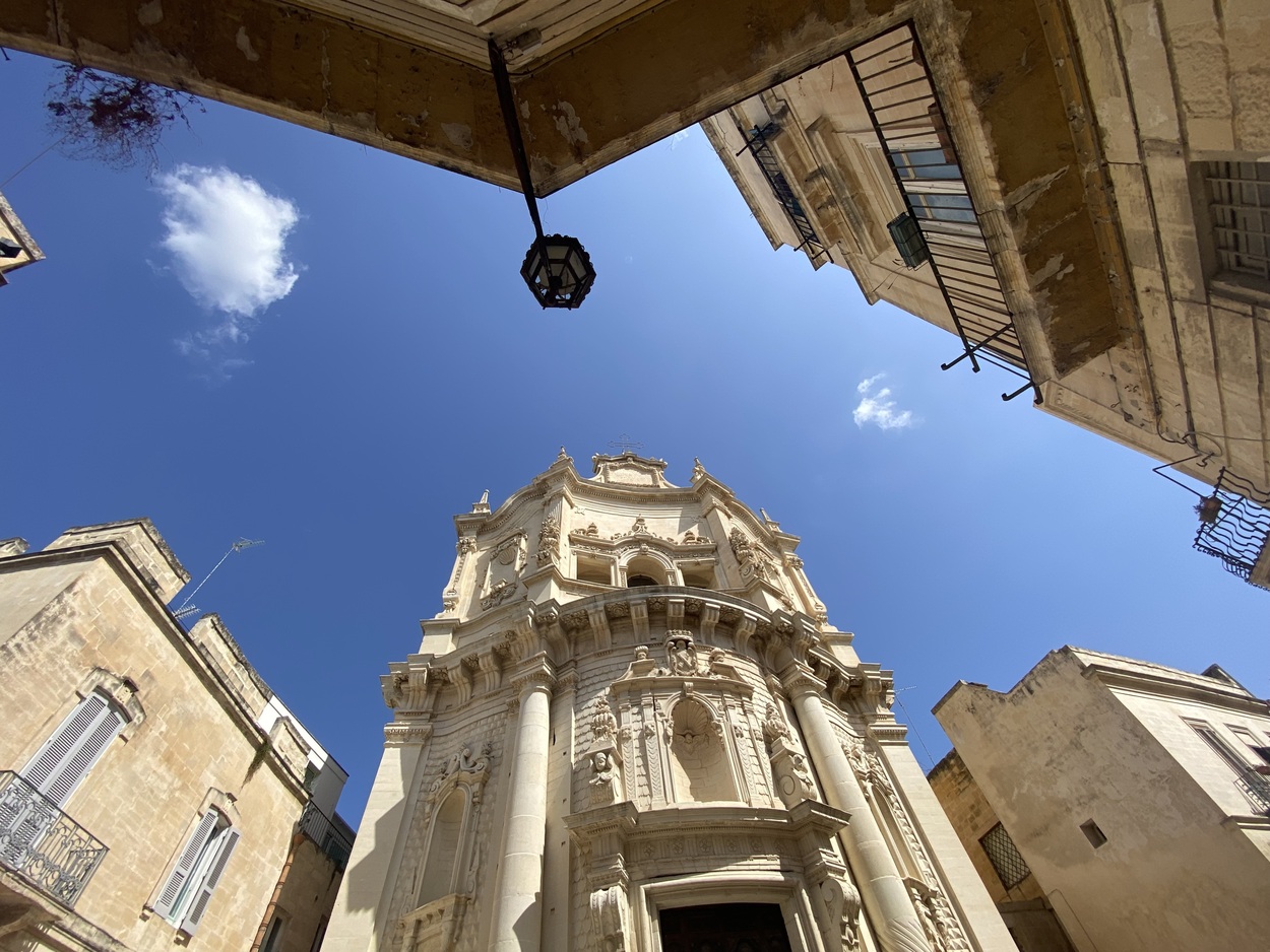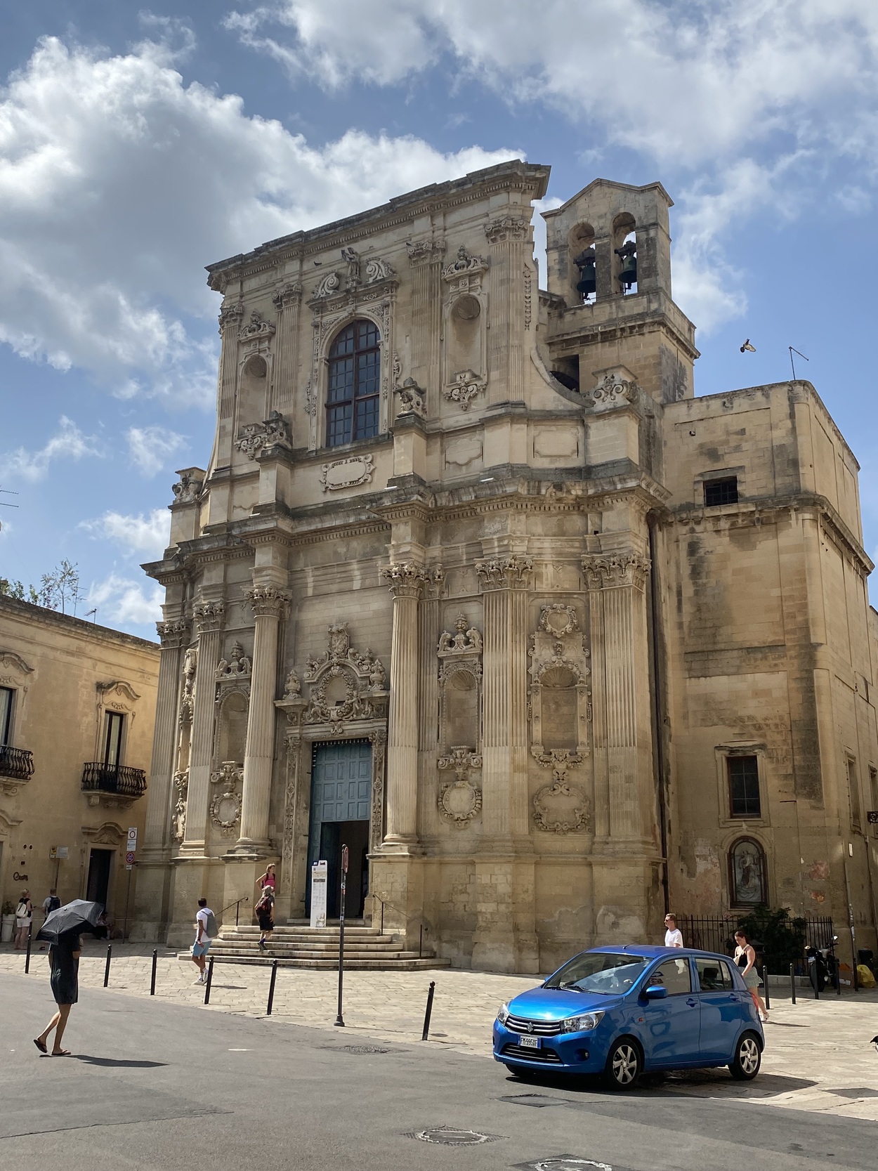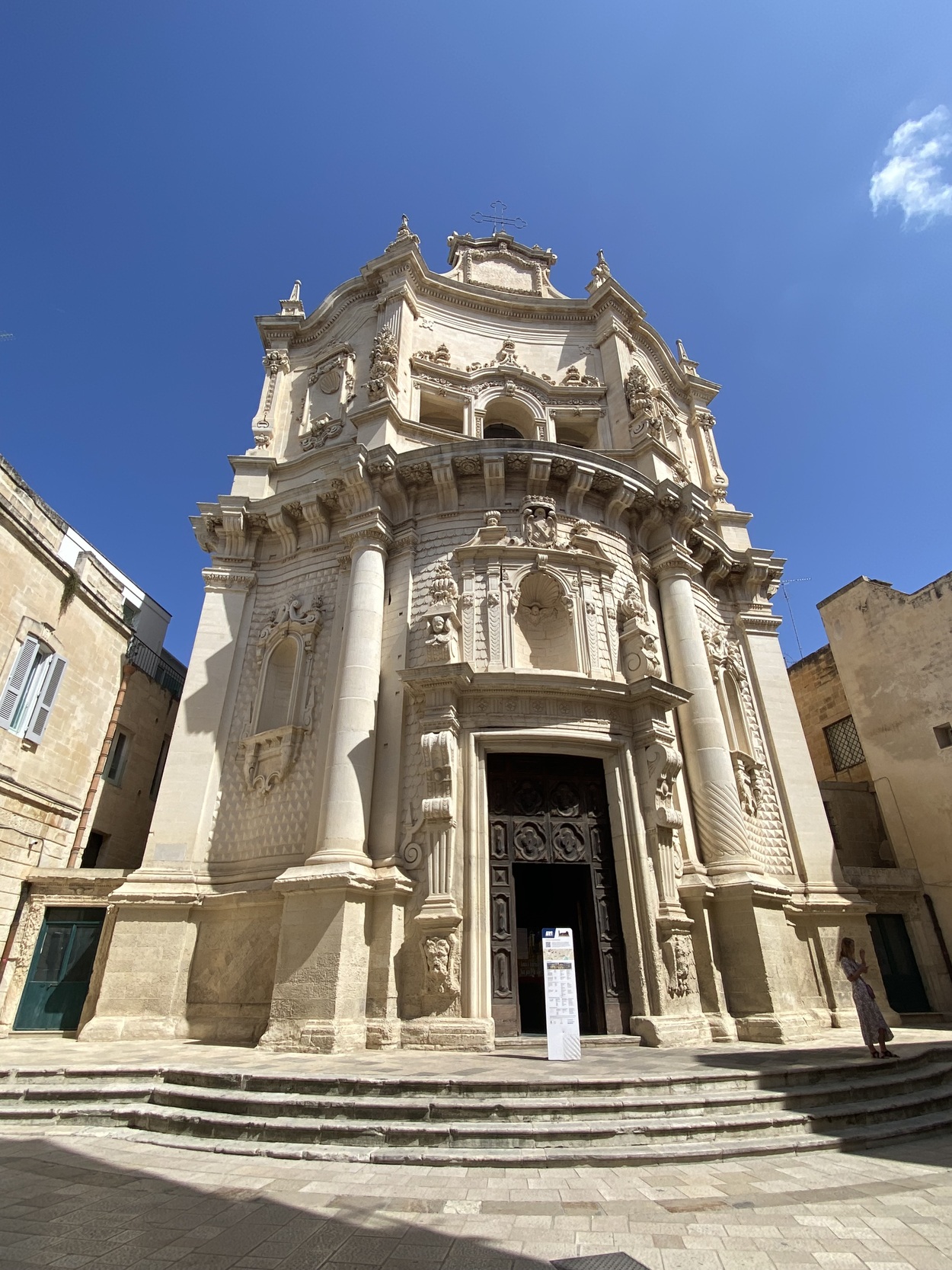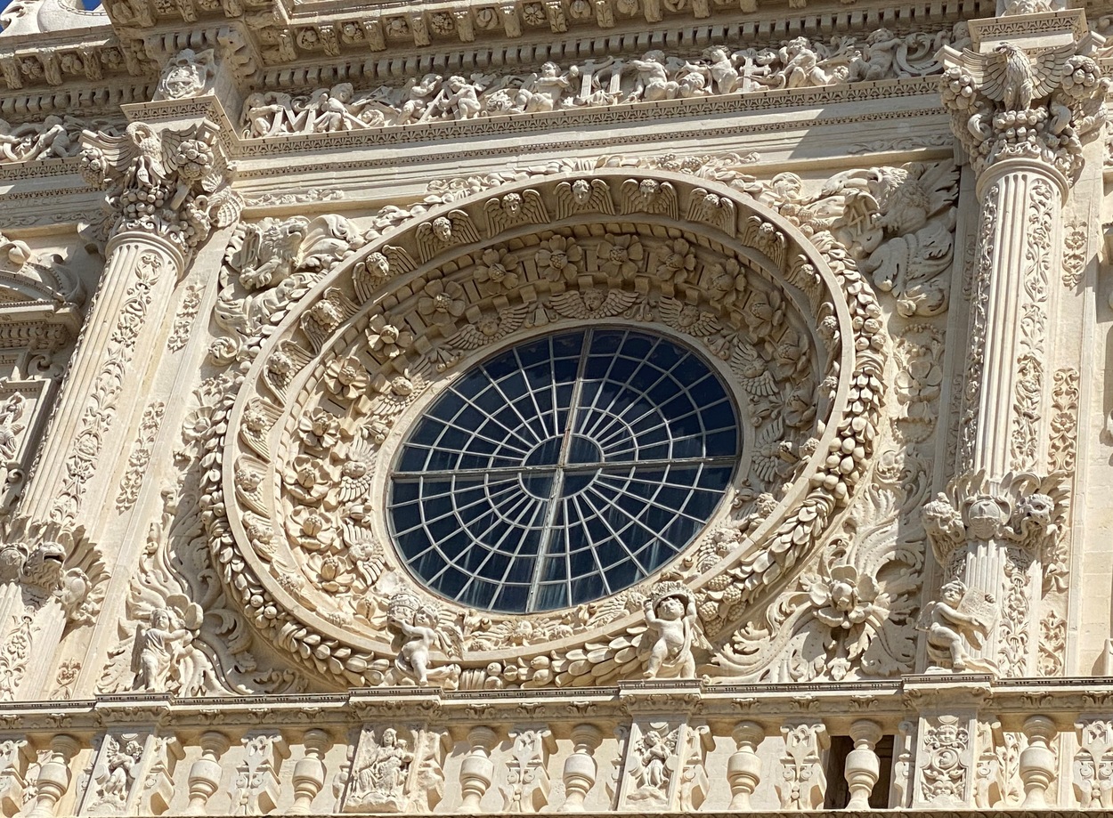 Базилика Санта-Кроче — символ барочного Саленто, воспетый многими. Поль Бурже называл её «декоративной фантазией, граничащей с безумием", чего тут только нет: орлы, драконы, обезьяны, святые, турки, витые колонны, ажурные балюстрады, завитки, цветы, фрукты, развевающиеся ленты...