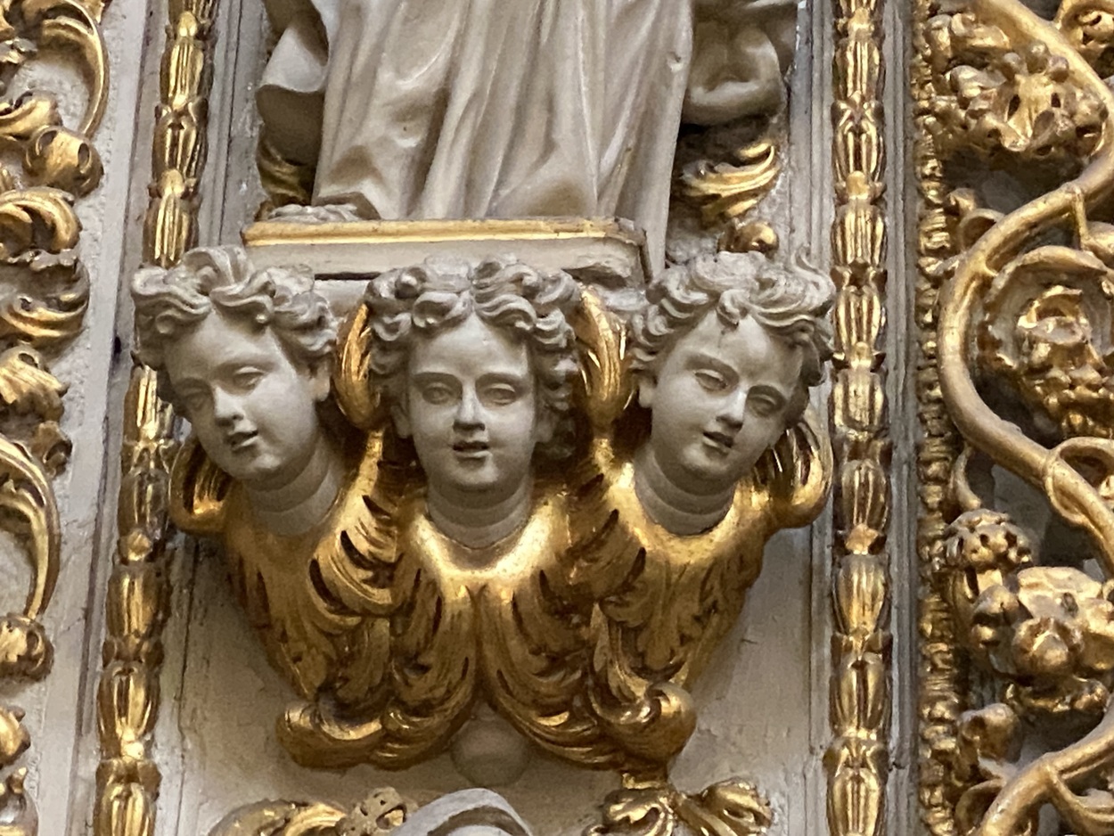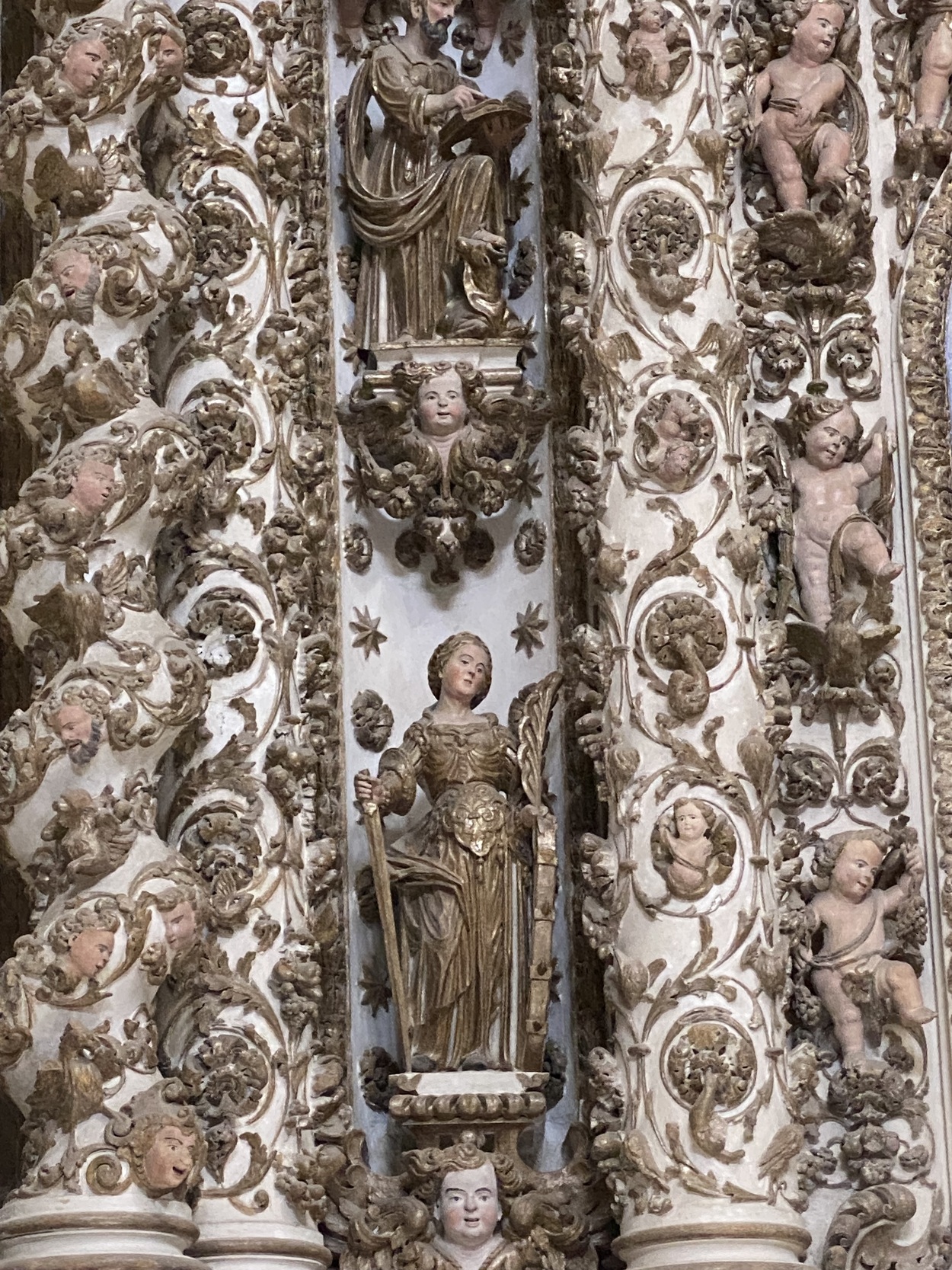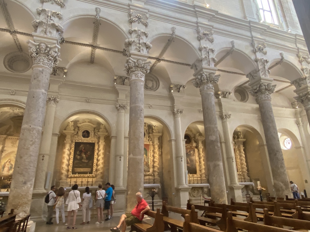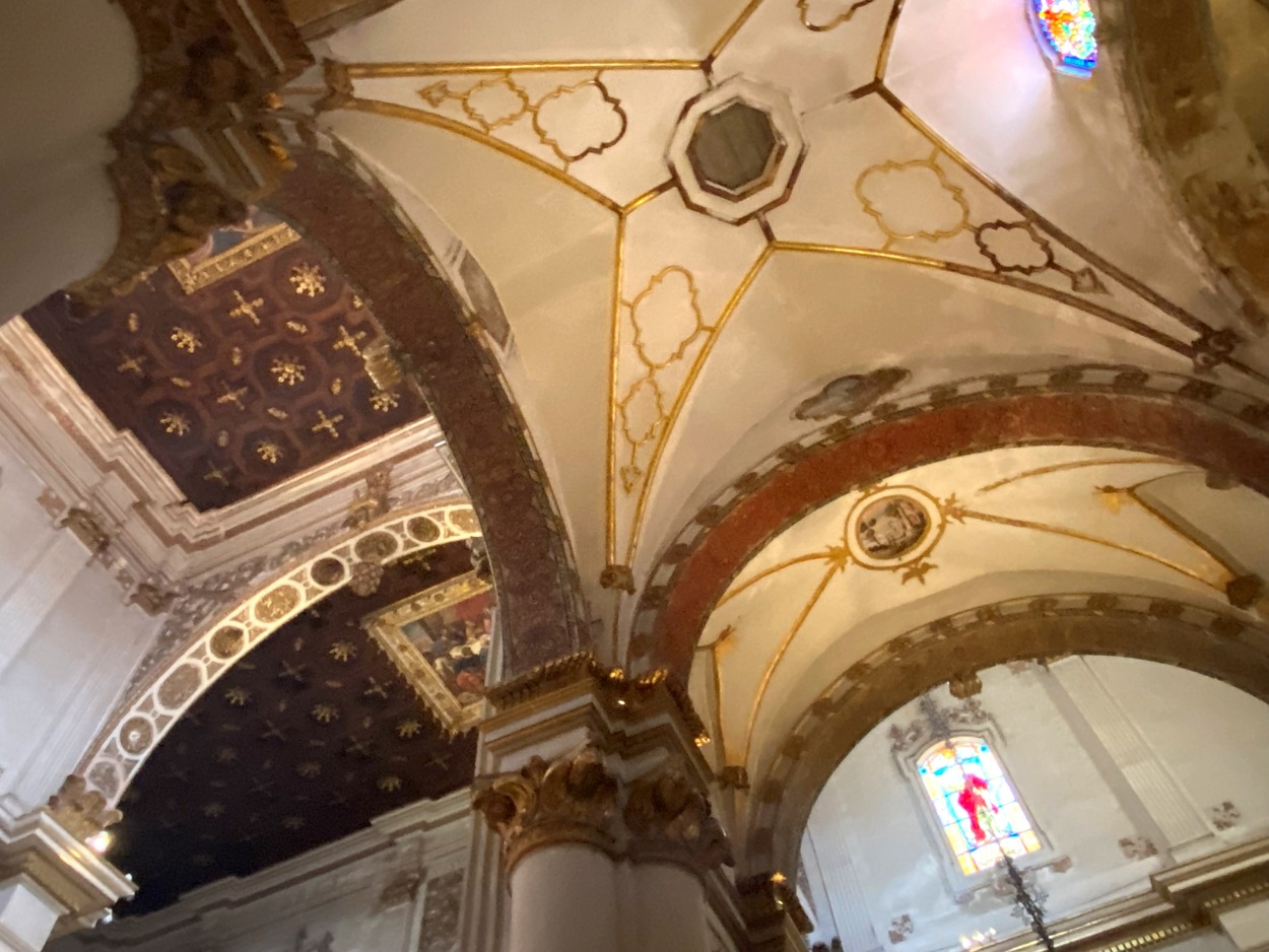 Кроме потолка, внимание привлекают и шесть боковых часовен с позолоченными алтарями.
