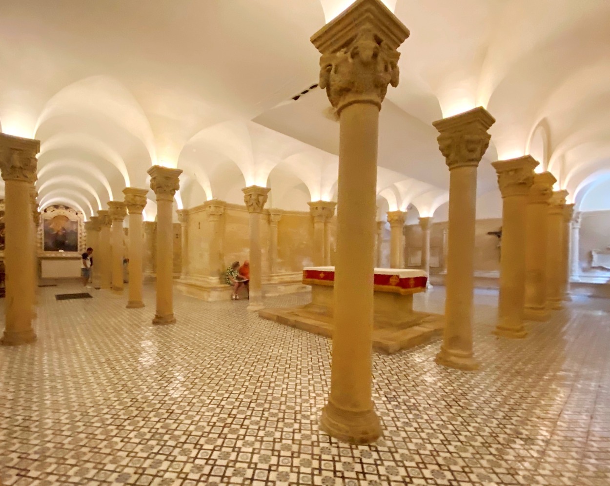 В соборе есть крипта, выглядит она весьма современно, интересно разглядывать разные капители 92-х колонн.