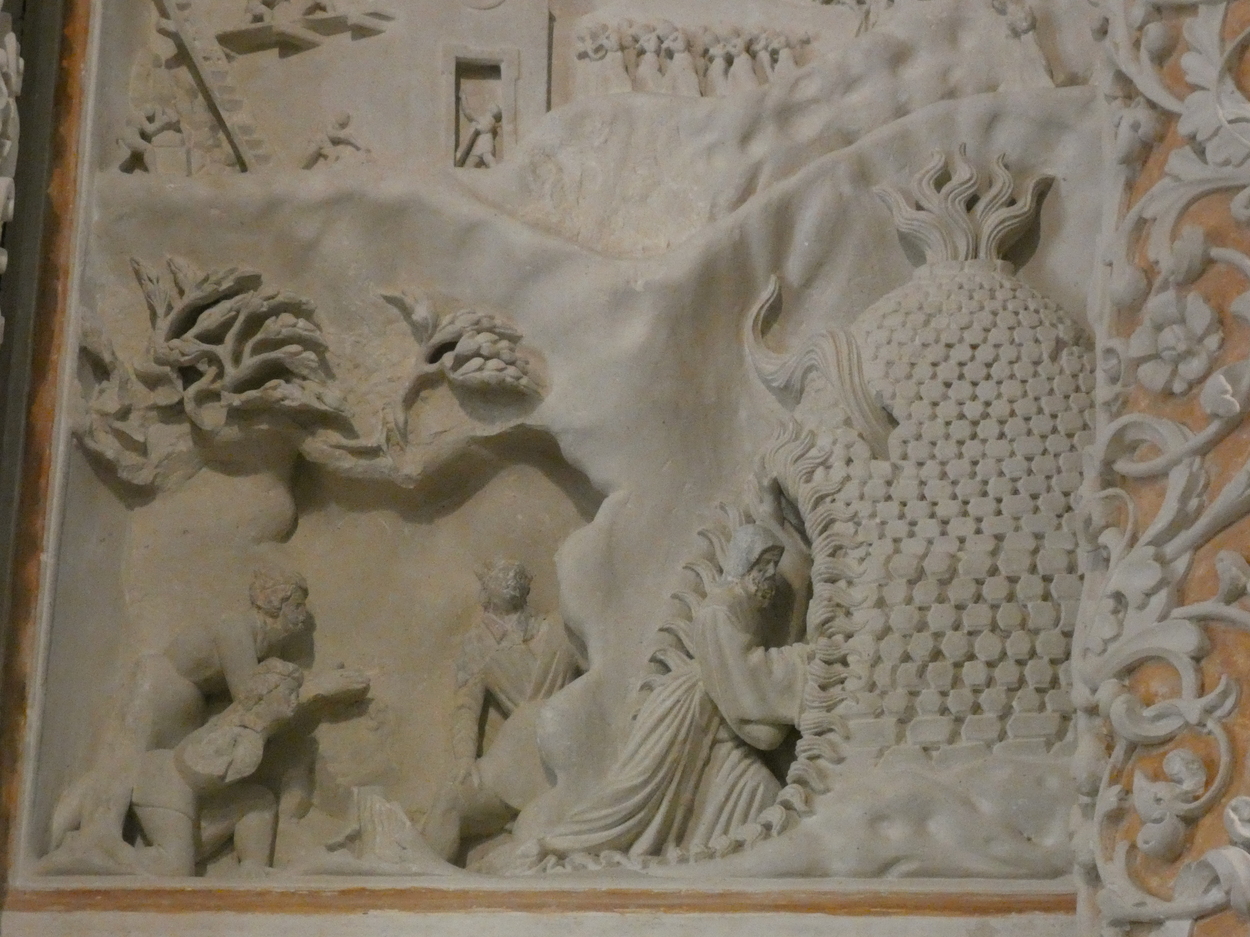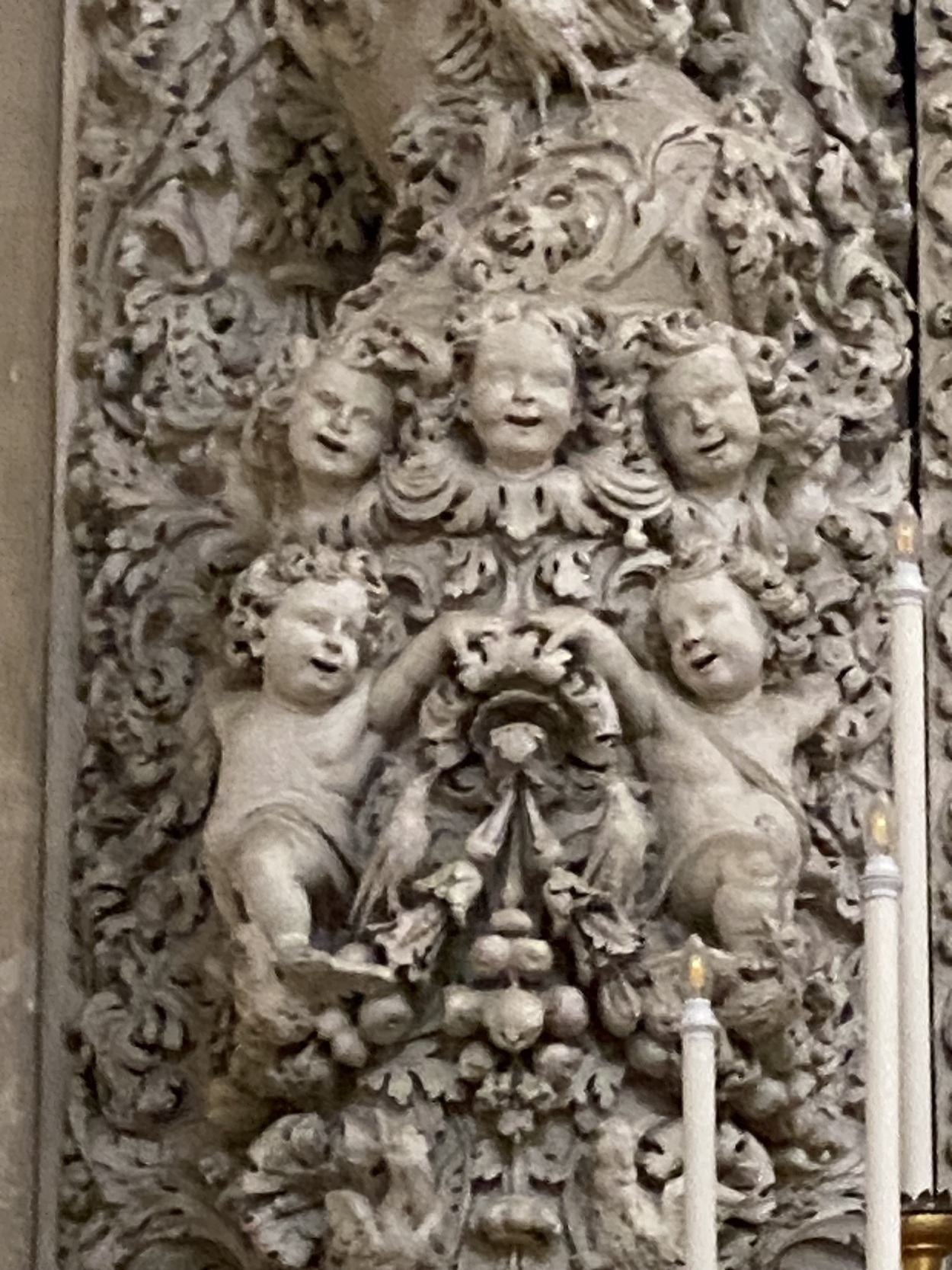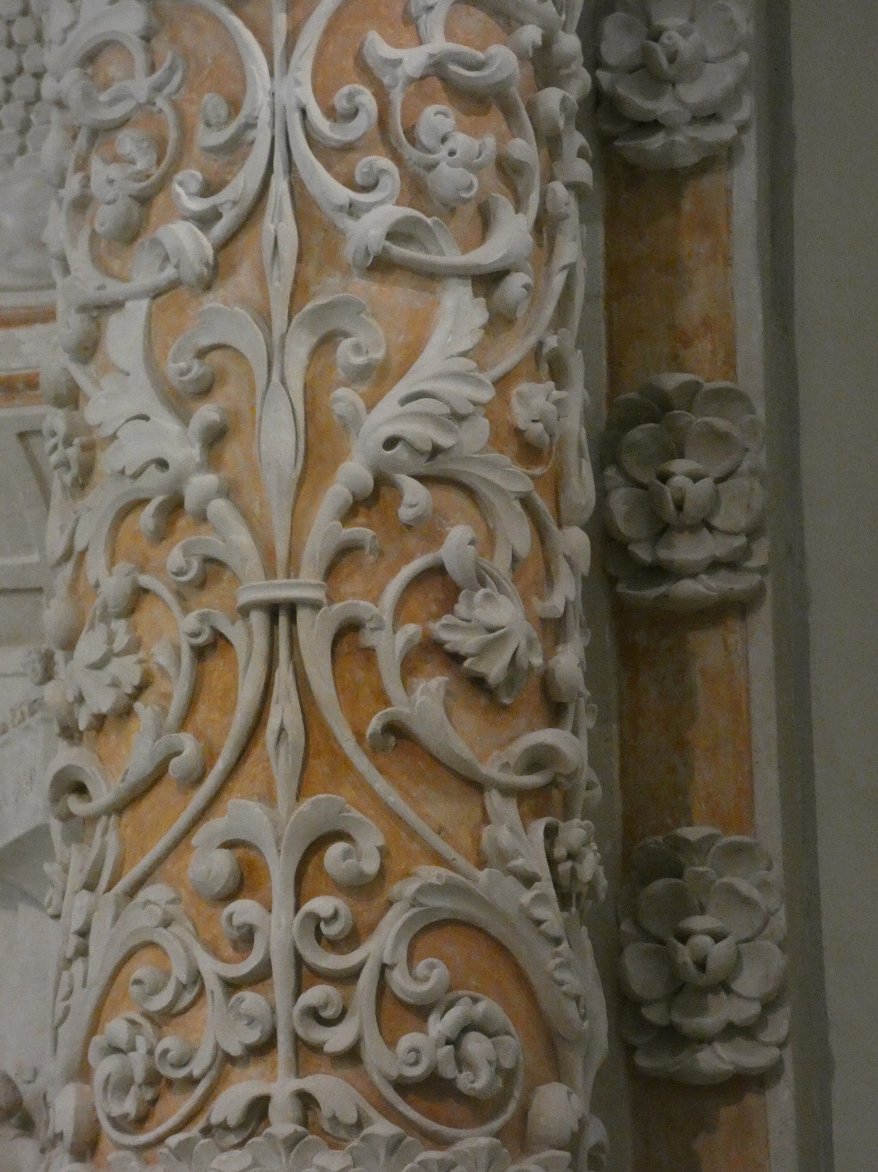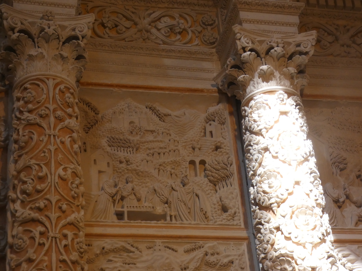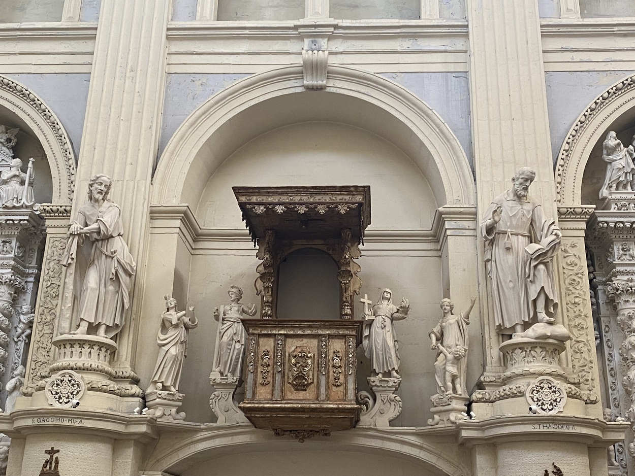Хорош также и главный алтарь, автор этого каменного кружева Джузеппе Чино. В нише стоит деревянная статуя святого Матфея работы неаполитанца Гаэтано Паталано. Детали каменного кружева.