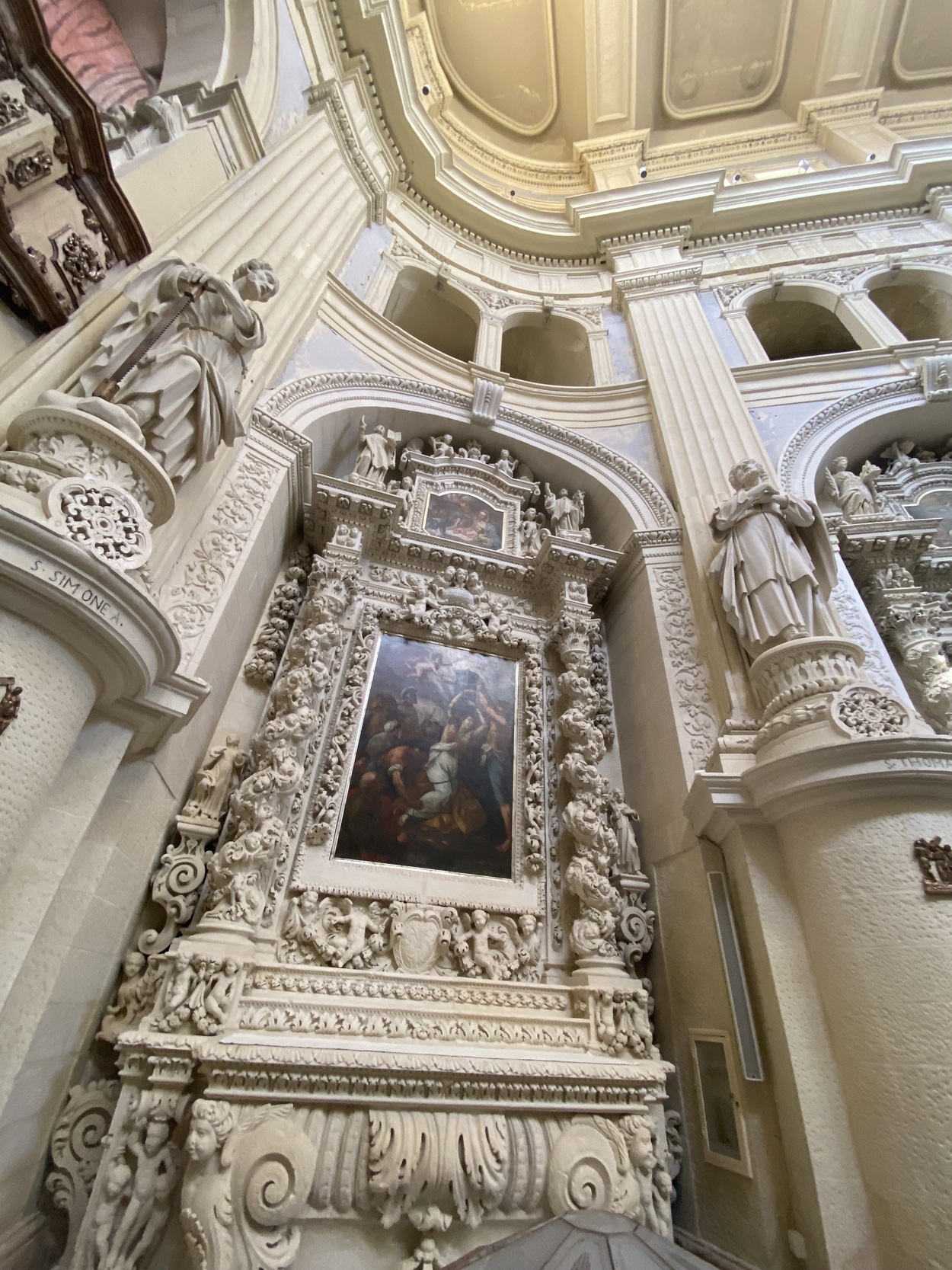 Имеется также 12 барочных алтарей XVII–XVIII вв., работы ведущих художников Саленто того времени: Цимбало, Чино, Пенны. Они были авторами многих произведений в городе. Характерный декор: витые золотистые колонны, украшенные цветами, птицами и фруктами и т.д.