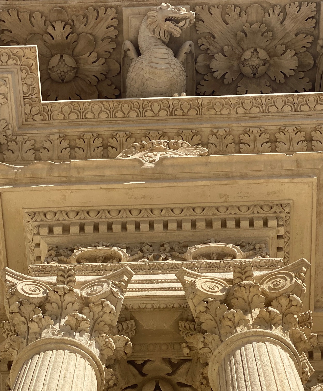 Любопытный факт: одна из колонн фасада осталась недоделанной. По легенде, это "дьявол убил скульптора от зависти", поэтому колонну называют "дьявольской". Колонну искать справа на фасаде, но в ней ничего особенного, а вот любопытные детали, роль которых объяснить не могу.