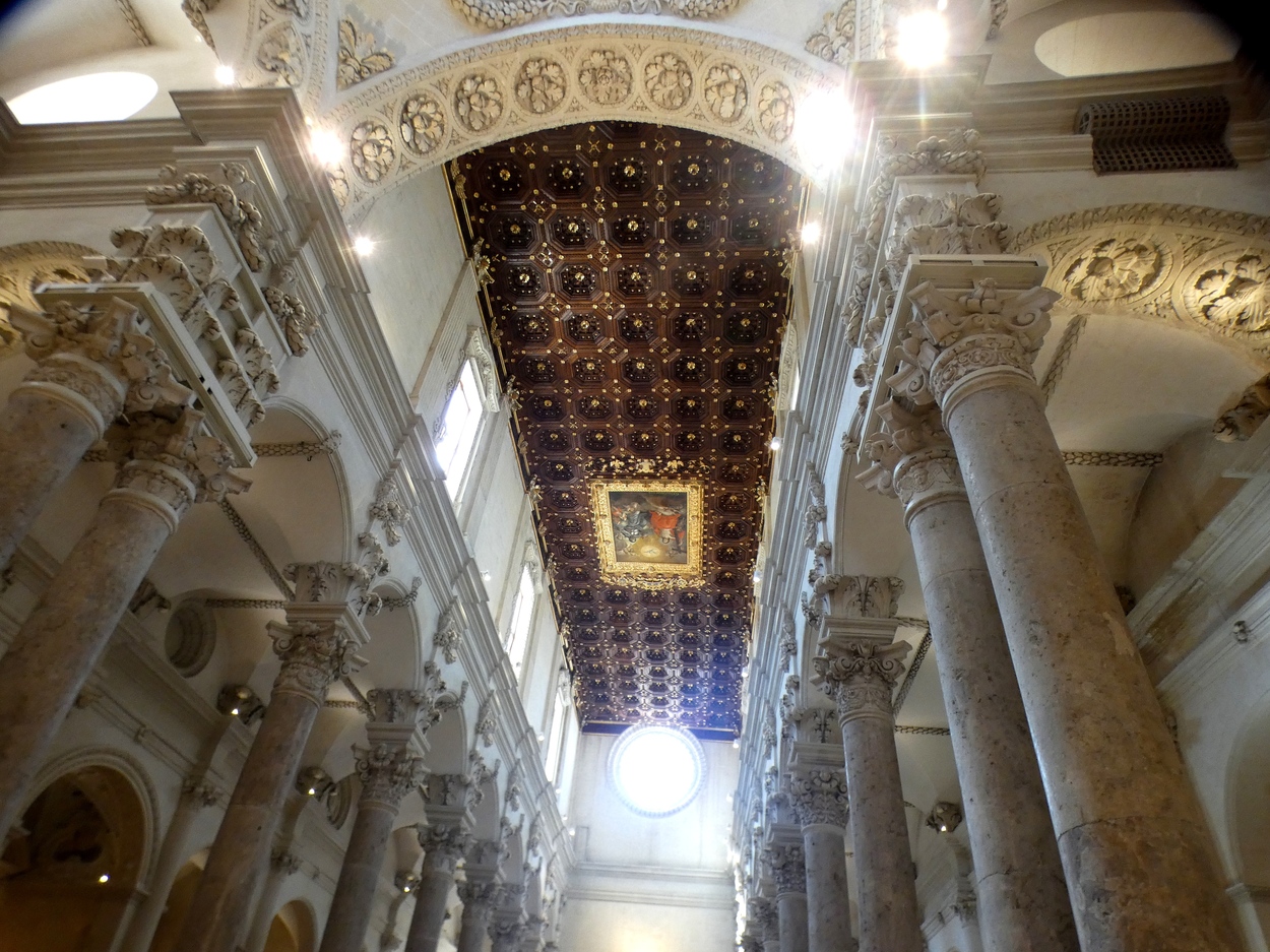 На деревянном потолке с позолоченными кессонами находятся картины, Джузеппе да Бриндизи, где изображены проповедь и мученичество Святого Оронцо - покровителя города.