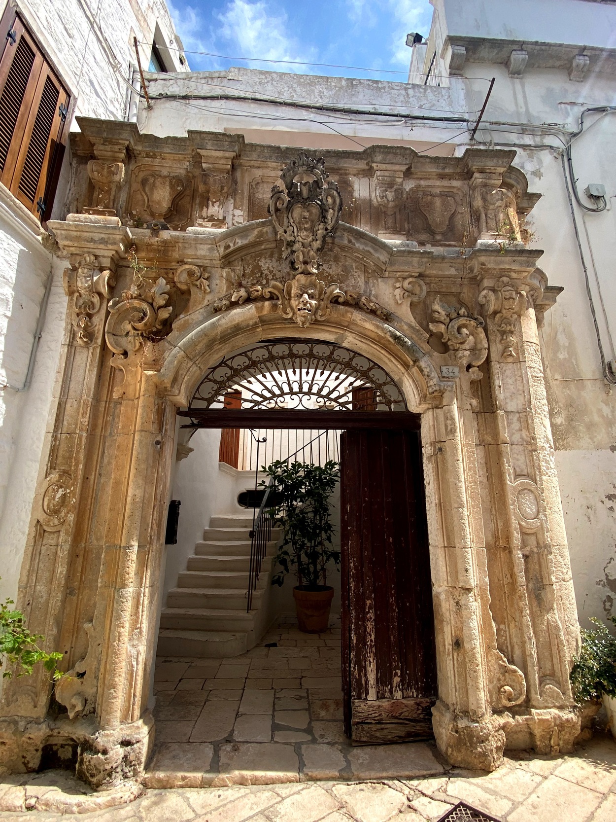 Круглый по форме ("ротондо") и компактный исторический центр находится на вершине холма и умещается внутри городских стен. Это лабиринт из узких средневековых улочек. Вас окружают белые домики, цветы, ресторанчики, всякий дизайн. Обращают на себя внимание коричневые элементы барокко на фоне белых стен.