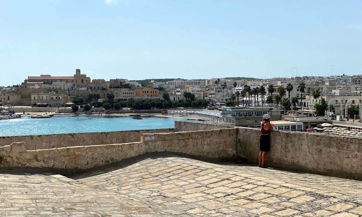 Для нас, приехавших в город на велосипедах, знакомство с ним началось от смотровой площадки у "Часовни открытого моря" (Cappella della Madonna dell'Altomare), которая была особенно почитаема у моряков.