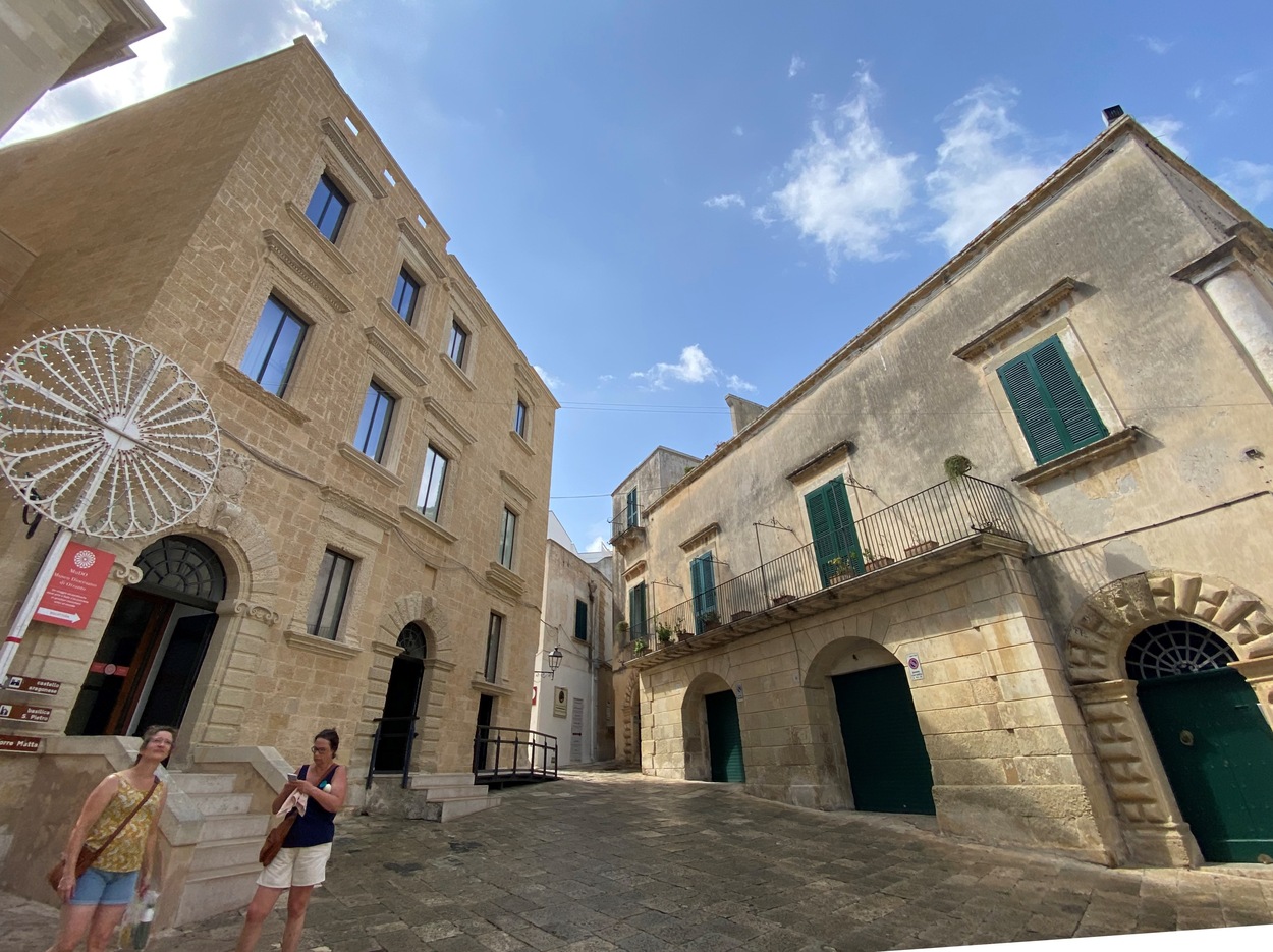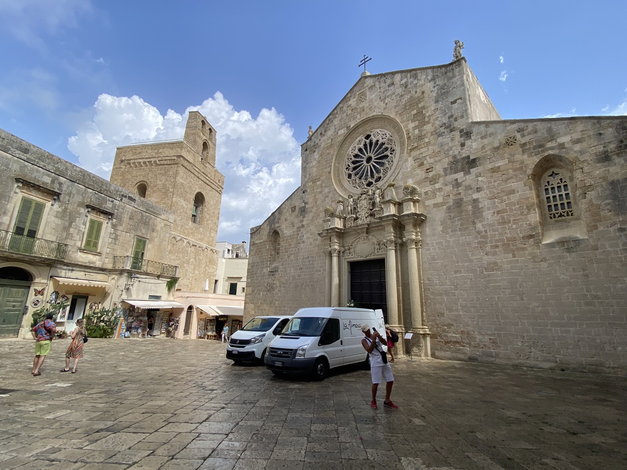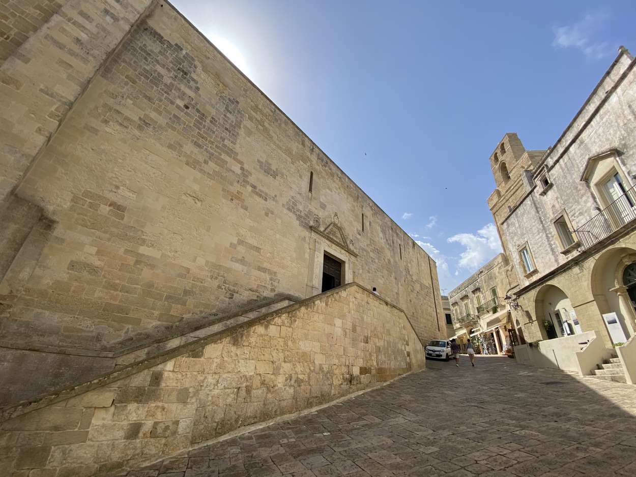 Перед нами комплекс зданий старого города: Кафедральный собор, Дворец епископа и Семинария; Палаццо Лопес (Palazzo Lopez), где находится Музей Отранто MUDO Museo Diocesano Otranto, в коллекции представлена живопись, старинные клавиры, фигуры из папье-маше (cartapesta), мозаики.