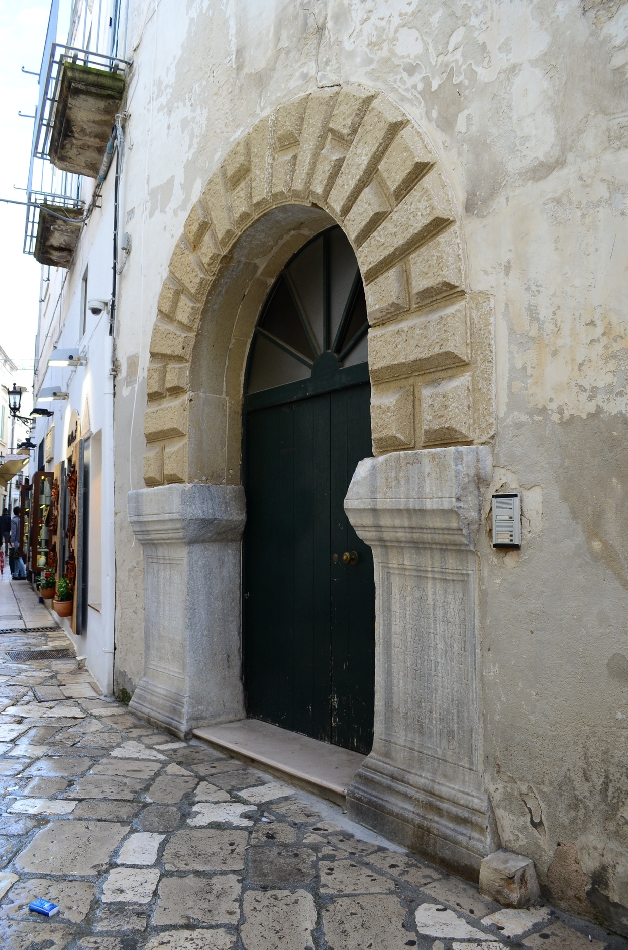 Покинув Piazza Basilica, держим курс на Palazzo Arcella-Piedistalli Romani, что на Corso Garibaldi. Арка дворца опирается на базы древних римских колонн. Эпиграф слева от двери посвящен Марку Аврелию Антонину, а эпиграф справа — Луцию Аврелию Веру.