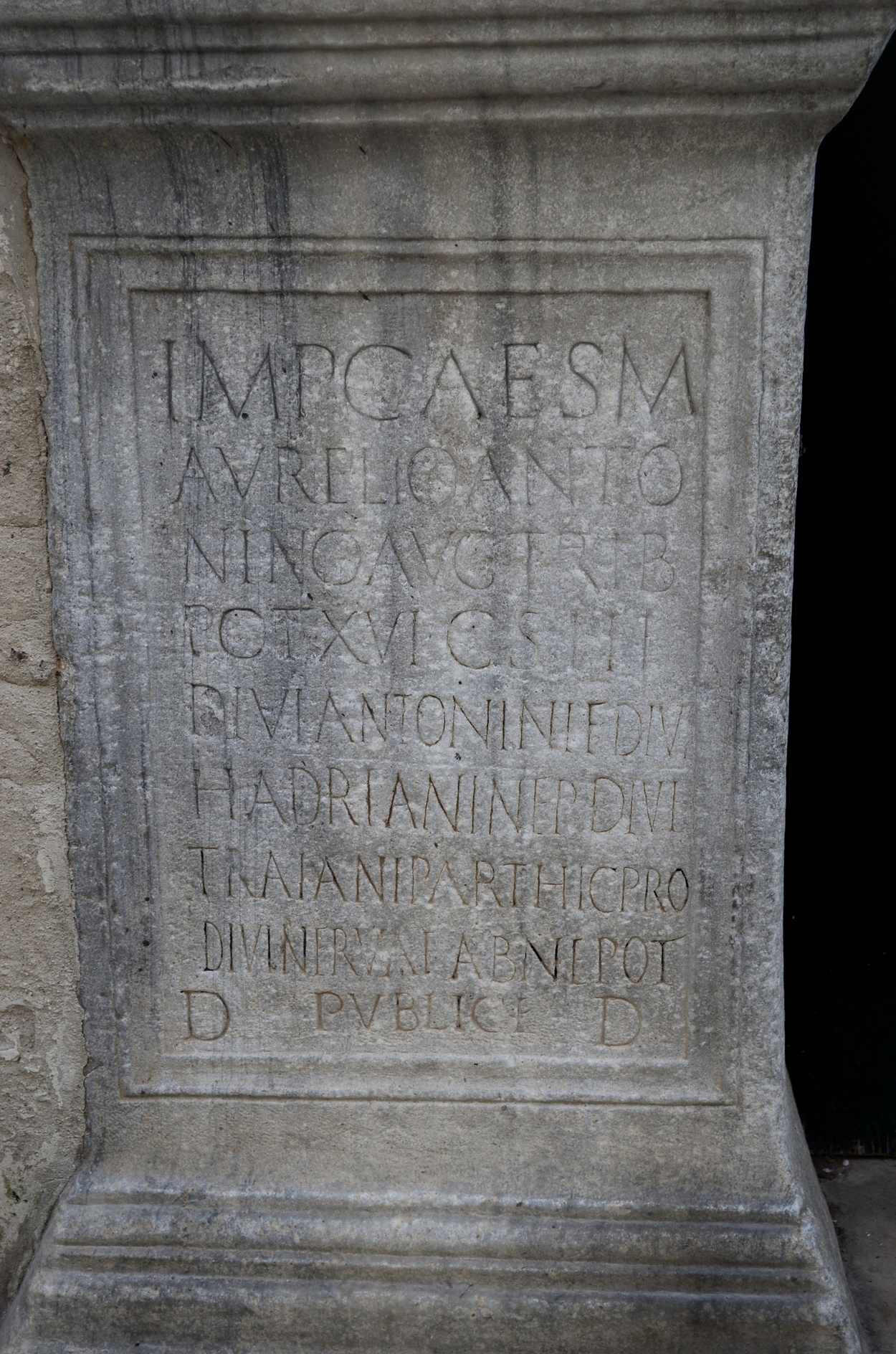 Среди наиболее значимых находок — две мраморные базы с латинскими надписями в честь императоров Марка Аврелия и Л. Вера (II век н. э.), вероятно, от почётных колонн. Сегодня они встроены в здание на Corso Garibaldi, 41.