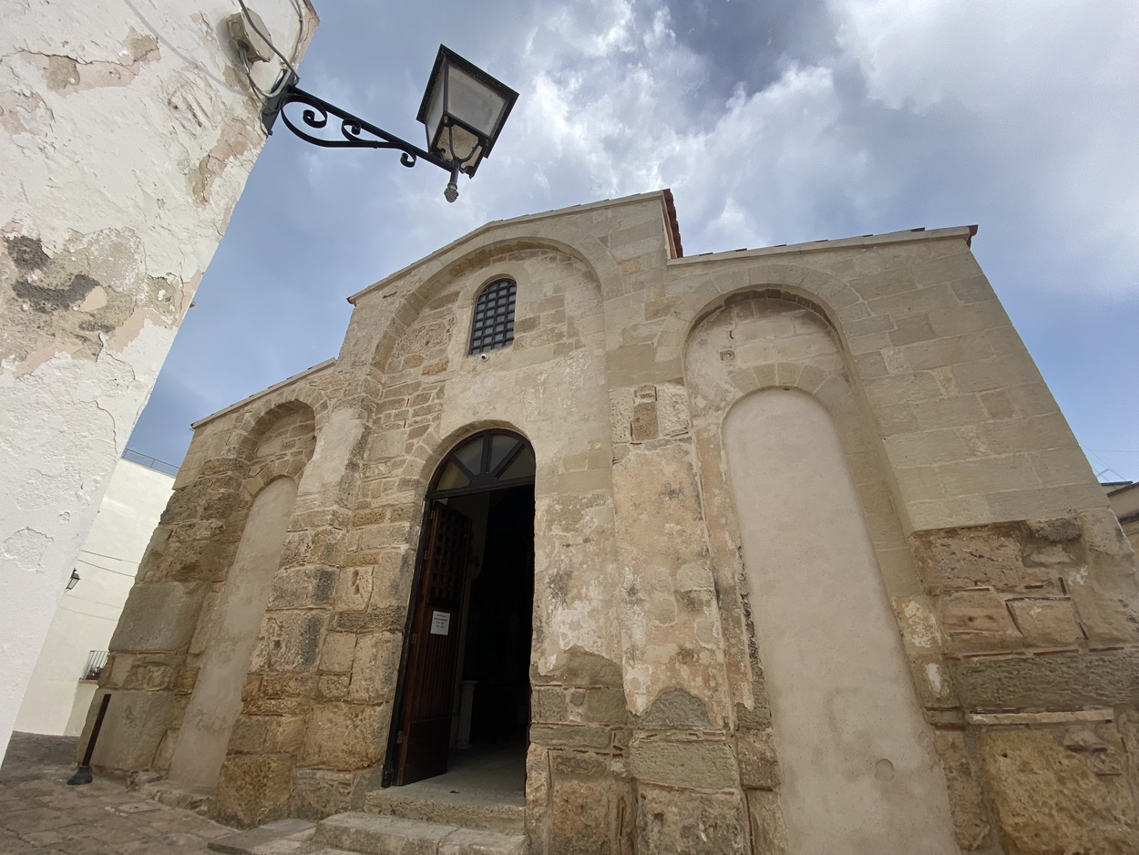 Храм, построенный где-то между IX и XI веками. Первоначальное здание имело иную форму: боковую дверь и традиционную выступающую апсиду. То, что мы видим сейчас, - результат реставраций, в ходе которых был уничтожен главный алтарь XVII века: от него сохранилась лишь каменная статуя Святого Петра с эпиграфом: "cesare penna di lecce scolpì/1635 UtN(N)ARO".