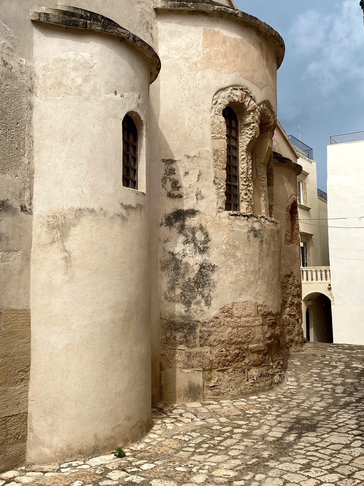 Именно здесь В 1480 году турки убили 800 человек и священнослужителя. Собор тогда был разграблен и превращен в мечеть. Через год Отранто был освобожден. После этого собор несколько раз перестраивали. И тем не менее здание сохранило черты, типичные для апулийской архитектуры XII в.