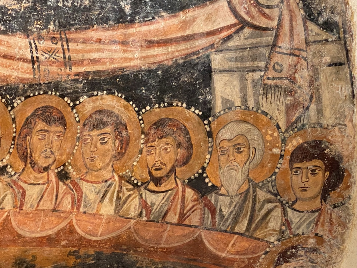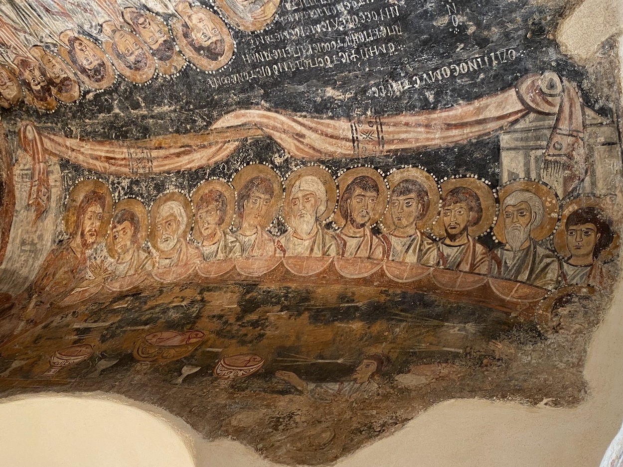 "Тайная вечеря» на своде северо-западного нефа - X век. Сцена подписана на греческом. Стол имеет форму полукруга. Слева доминирует фигура Христа; рядом с ним Иоанн, за ним следуют апостолы, расположенные не по иерархии, а в ритме хроматических чередований (Пётр, Андрей и Матфей находятся ближе всех к Христу). Иуда, без нимба, с протянутой рукой, меньше других, находится справа перед столом отдельно от всех.