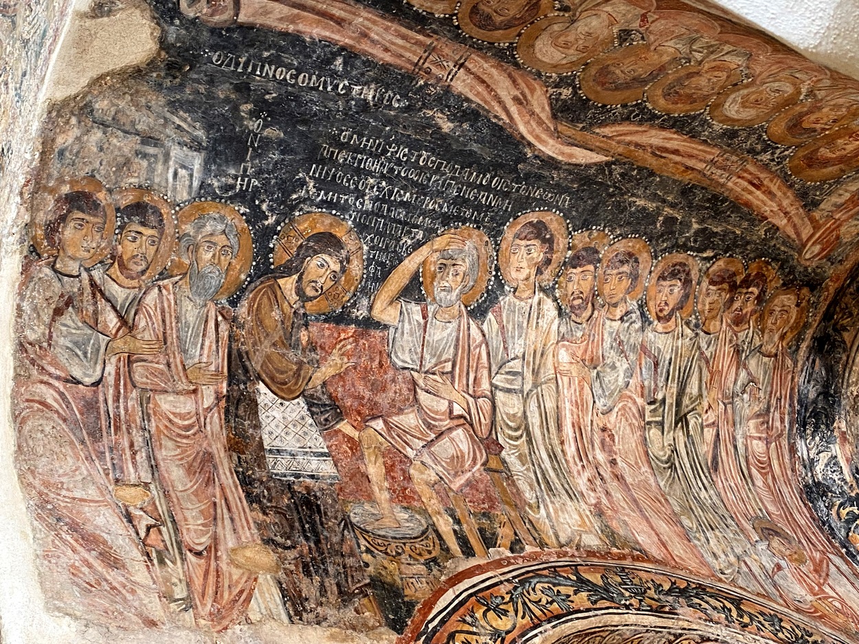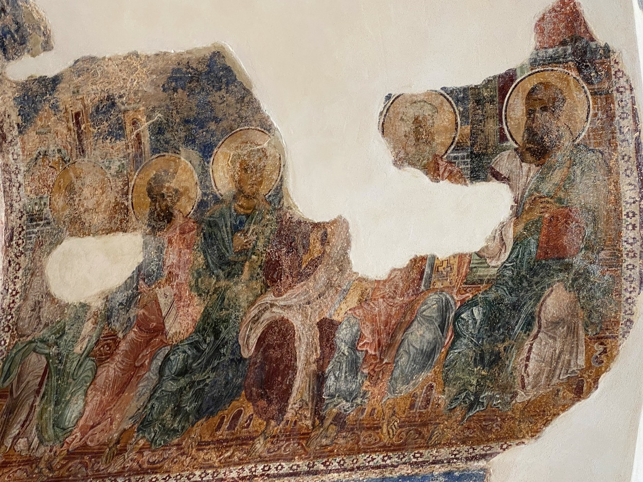 (Мое примечание. Похожая "Тайная вечеря" есть в церкви Kokar Kilise Долины Ихлара, по которой мы путешествовали в 2020-21 гг, см. отчеты раз и два. О византийской традиции "Тайной вечери" см здесь).