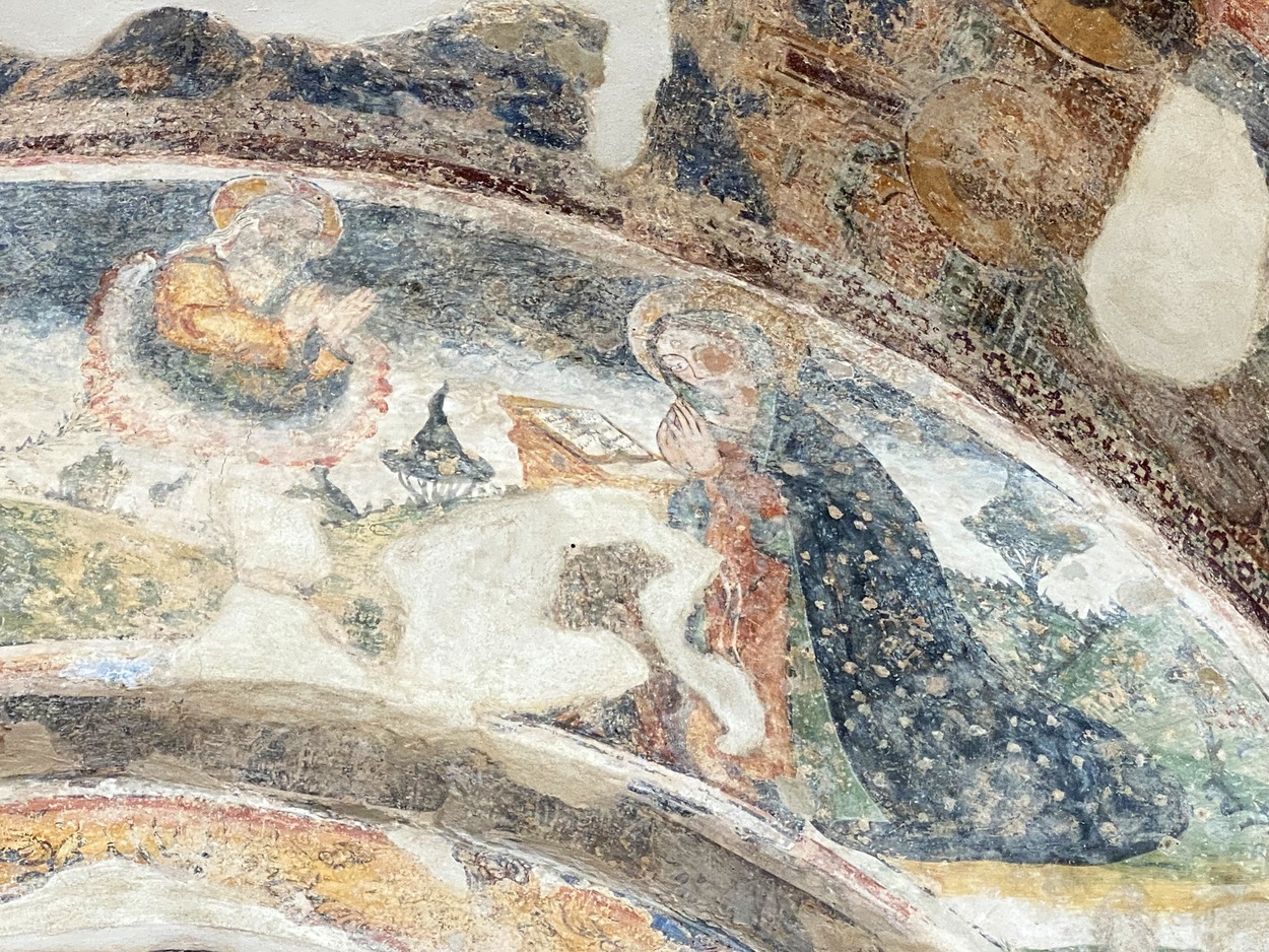 После ухода византийской администрации из Италии под натиском норманнов греческое население Саленто продолжало сохранять элементы восточной культуры. Фреска "Благовещение" в арке главной апсиды.