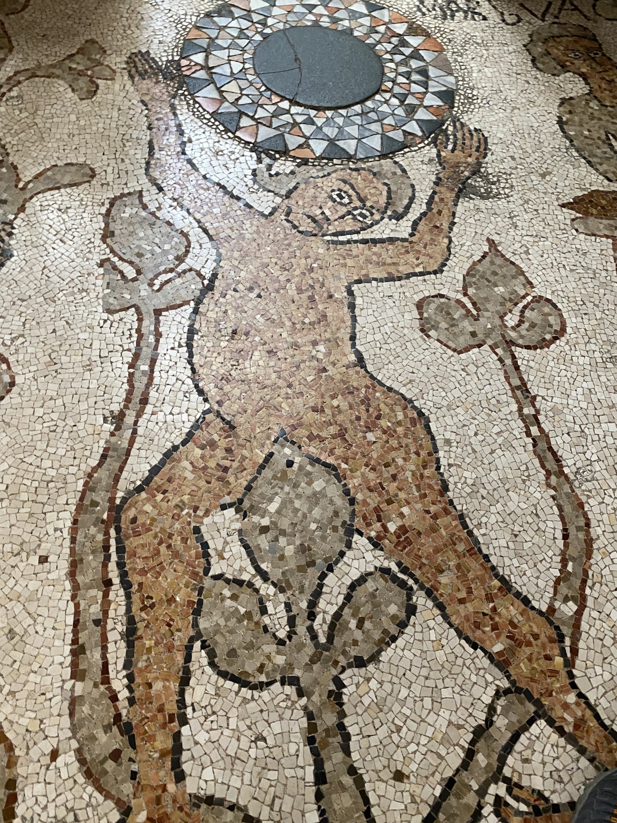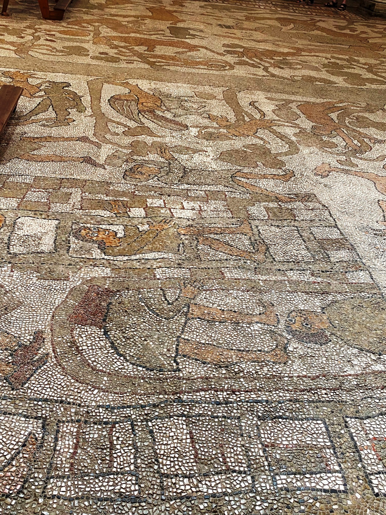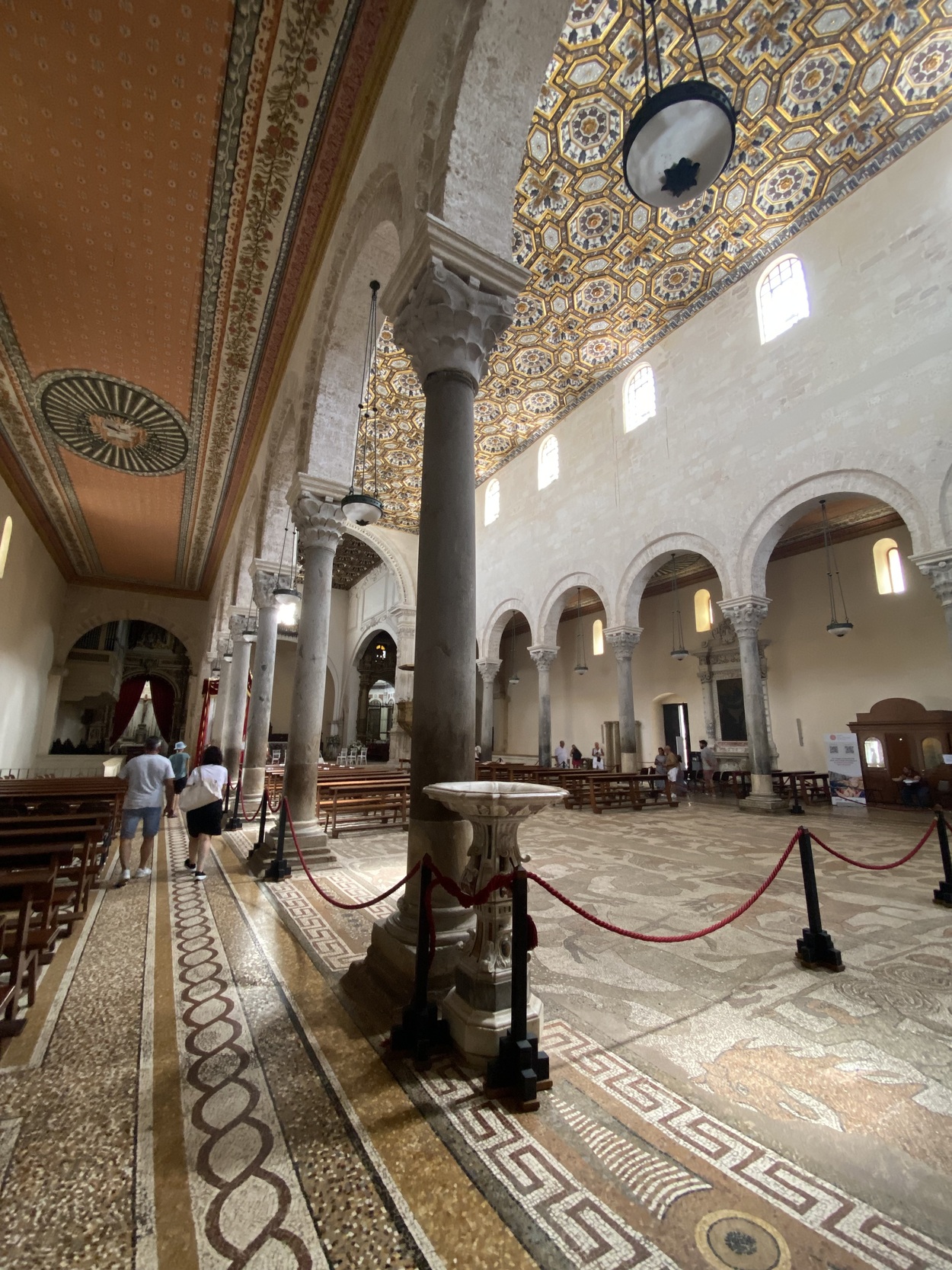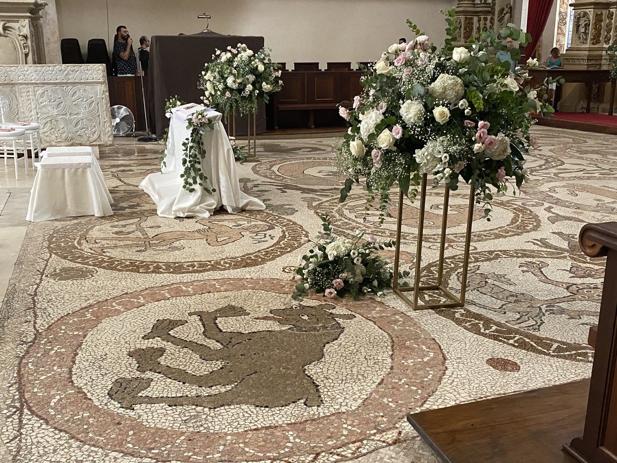 Главной особенностью собора является грандиозная напольная мозаика, покрывающая основной и боковые нефы.