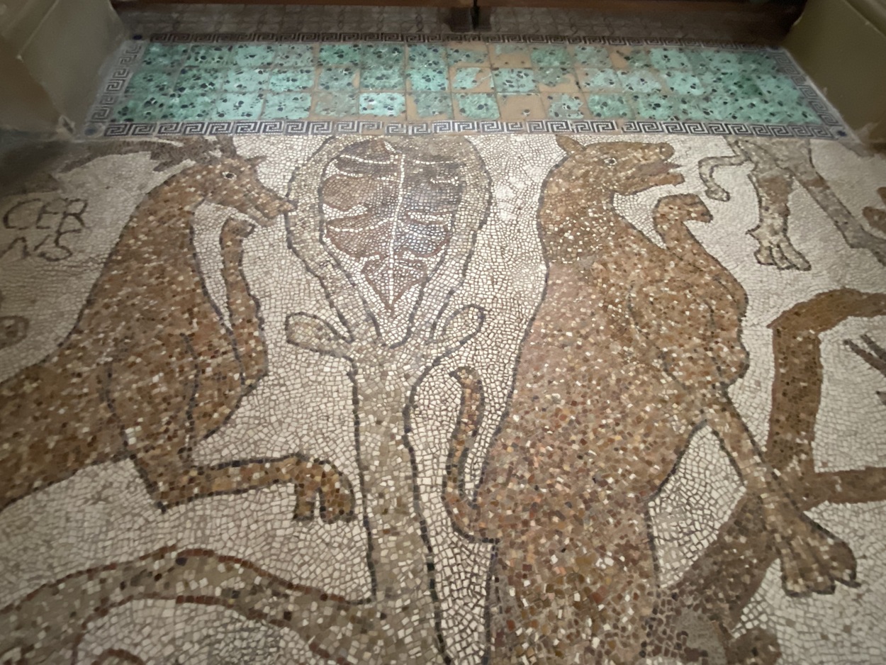Мозаика в соборе изображает гигантское "Древо Жизни". Его поддерживают два слона - отсылка к средневековому бестиарию, где слоны символизируют силу и мудрость.