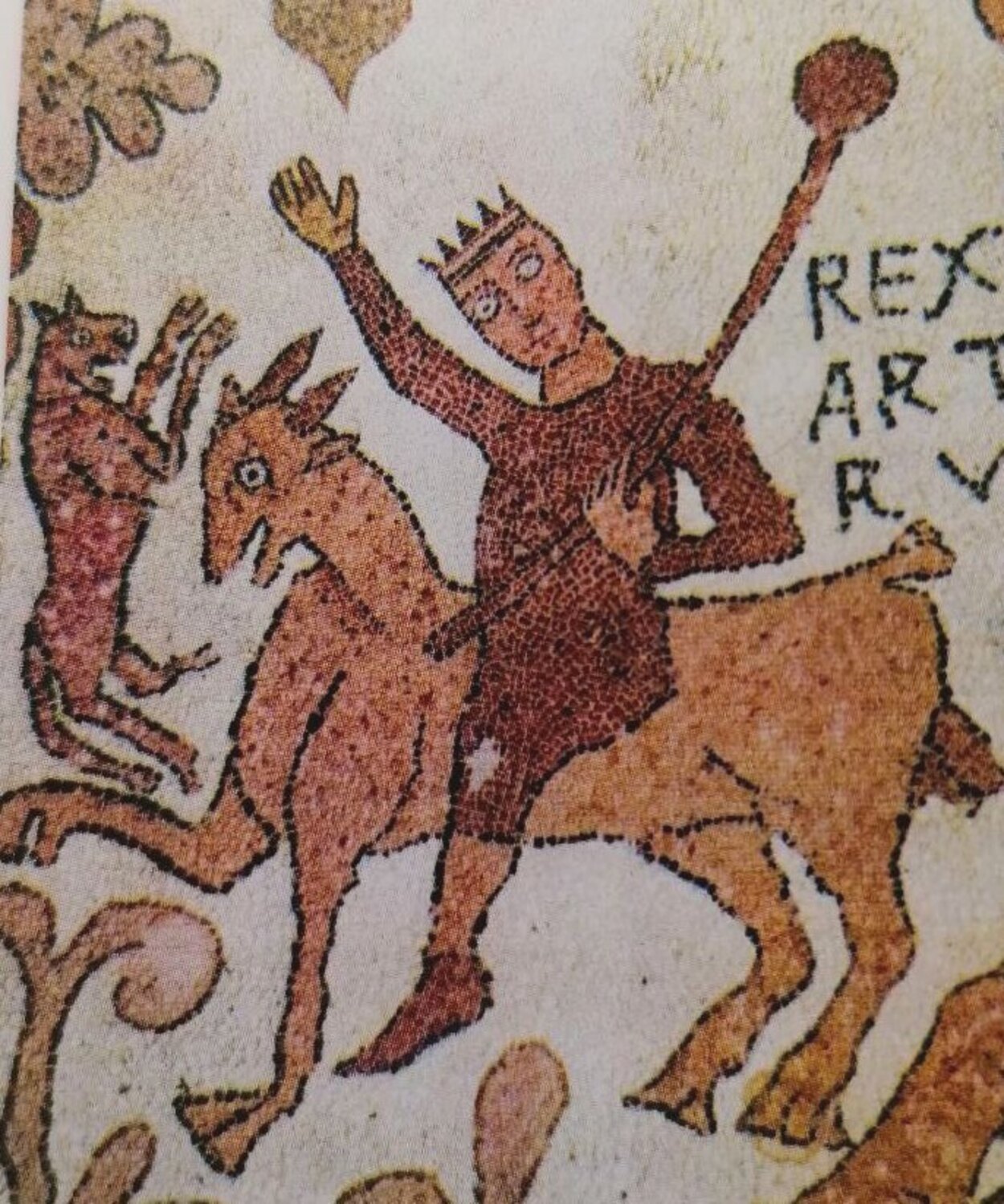 Франко-нормандский мир представлен фигурой короля Артура, тогда как арабское влияние проявляется в изображении животных в тондо — круговых медальонах с изображениями охотничьих рогов (олифантов) из слоновой кости. Эти рога, характерные для мусульманской культуры, здесь украшены по краям орнаментами с элементами арабской письменности.