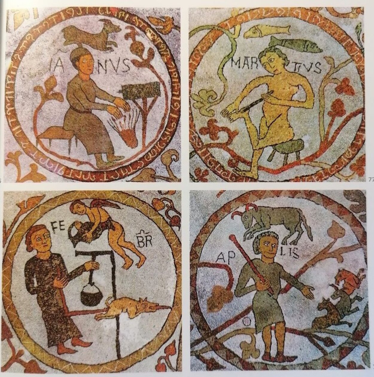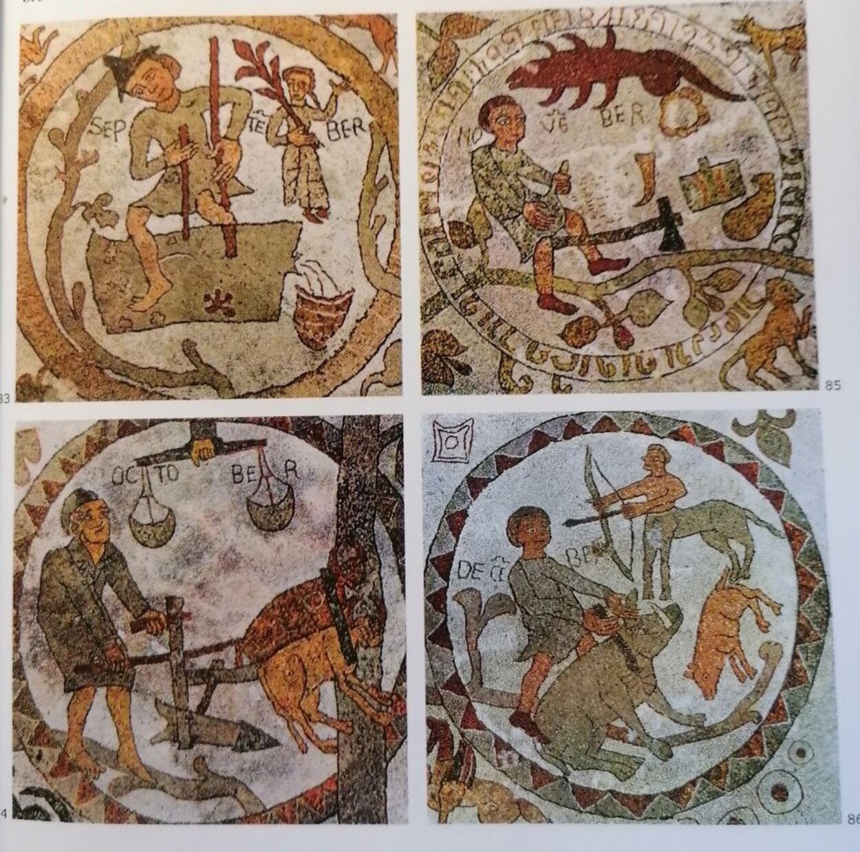 После вставки с большой надписью следует изображение месяцев, вписанных в круги. Они символизируют принадлежность человеческого времени Богу и напоминают о том, что труд человека — это акт искупления первородного греха и должен быть посвящён Богу.