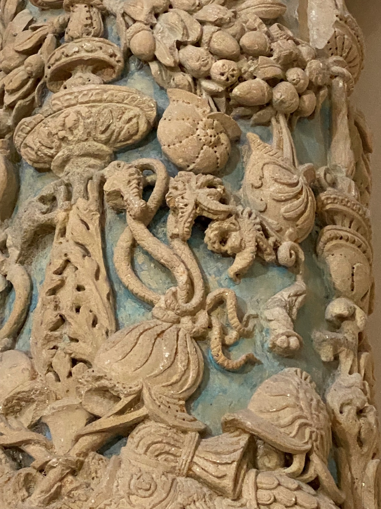 Мы достигаем апсиды левого нефа, где находится барочная Часовня Таинства с изысканным горельефом в арке.