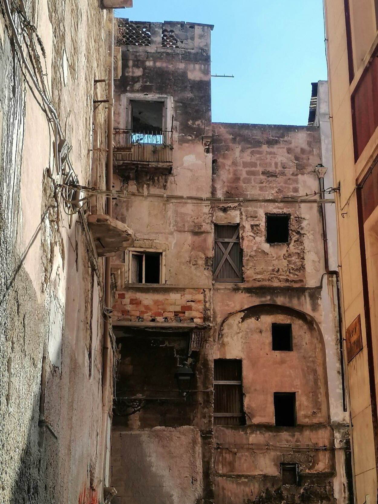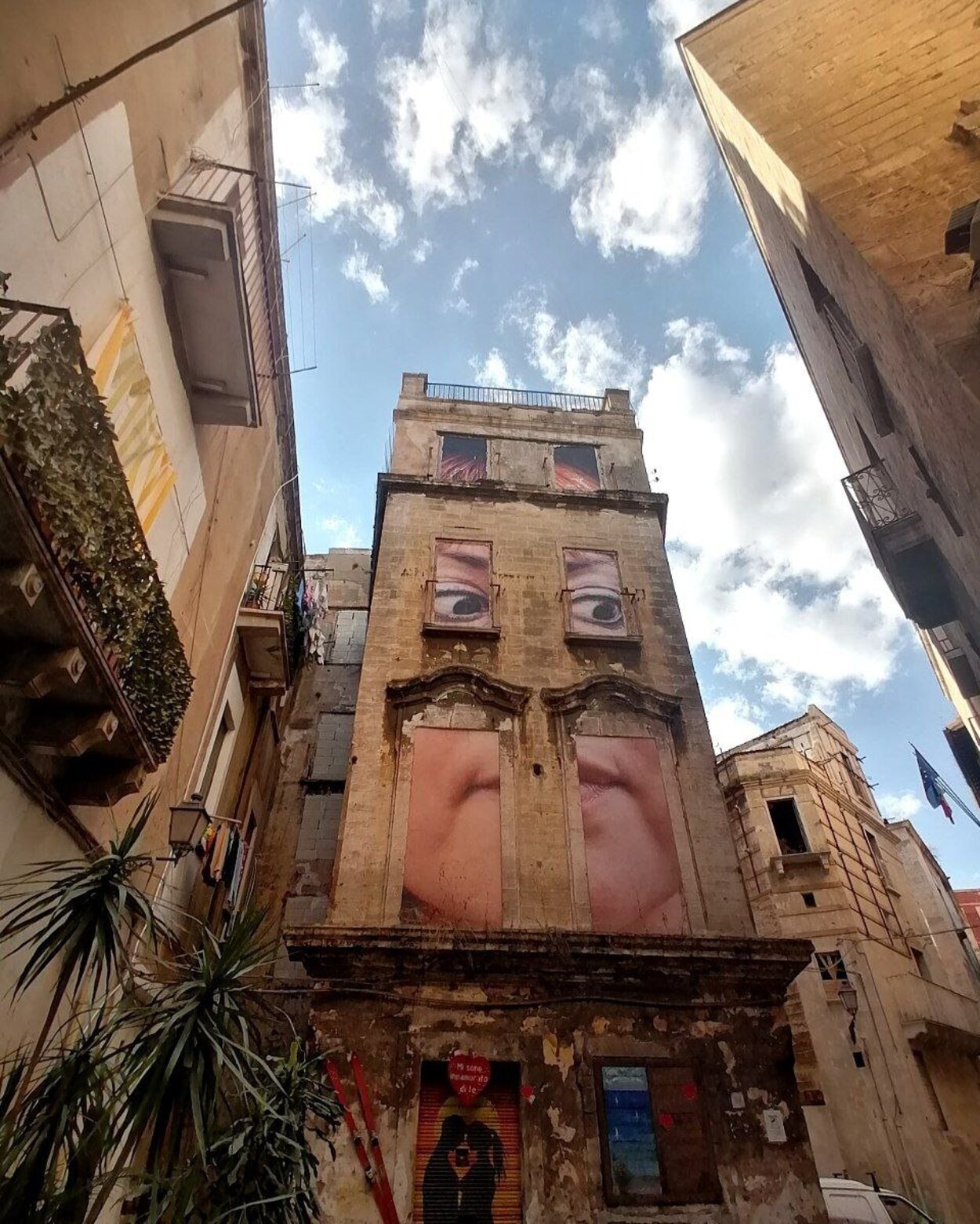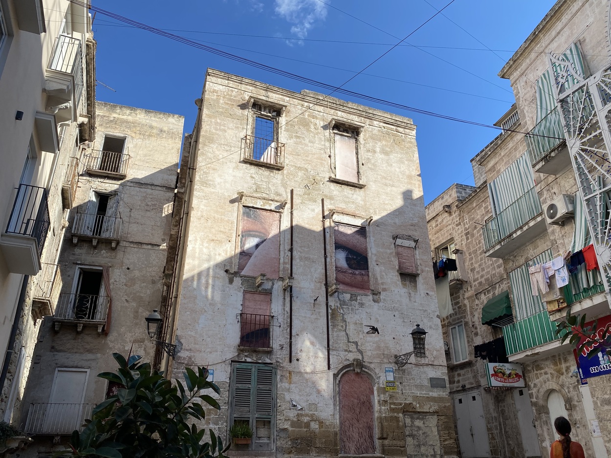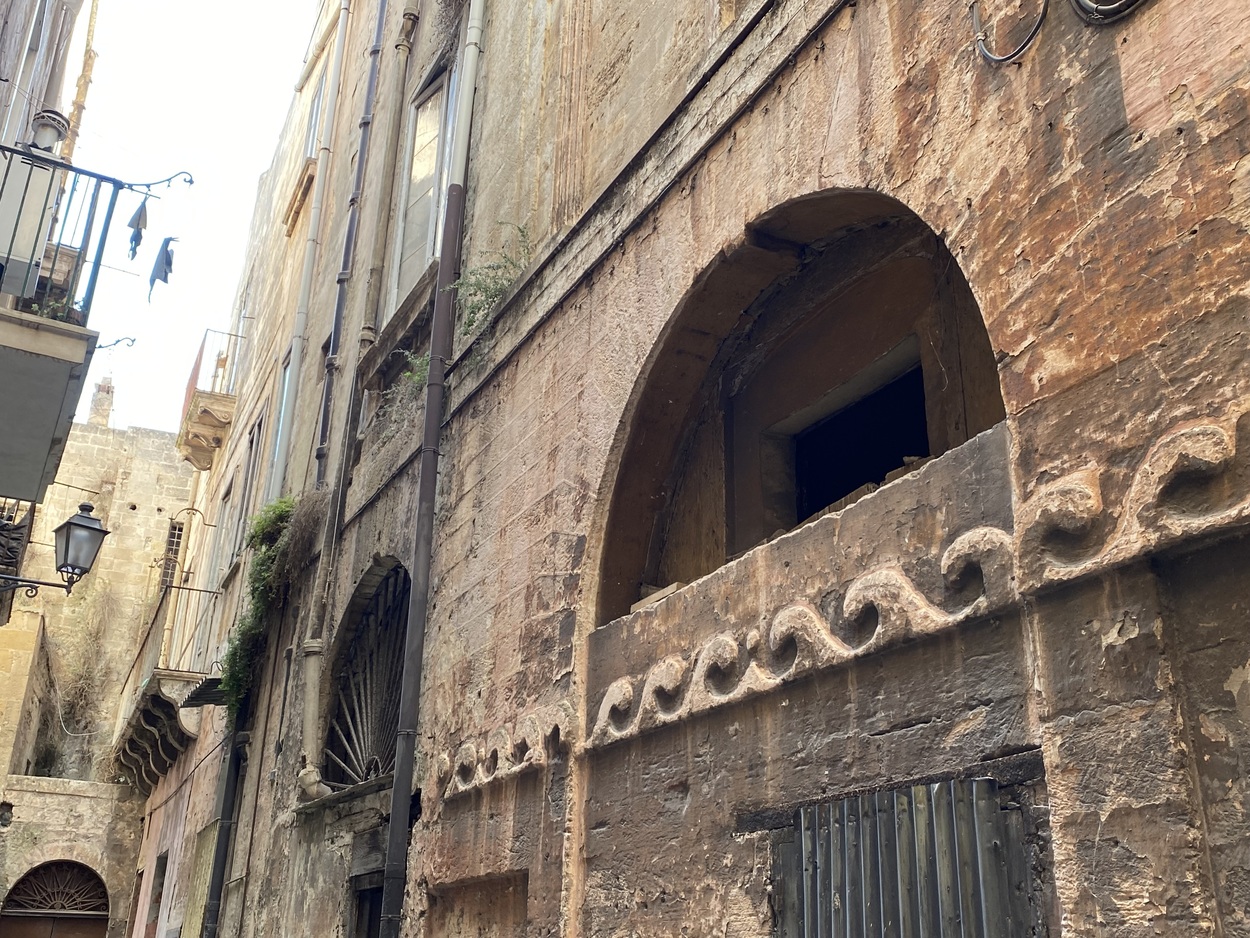Первое, что бросается в глаза в старой части города, - это заброшенность-покинутость и депрессивность. Никогда не видела такого упадка в Италии. Многие дома-палаццо пустуют, окна замурованы - город-призрак какой-то. Некоторые из домов, для оживления, превращены в инсталляции.