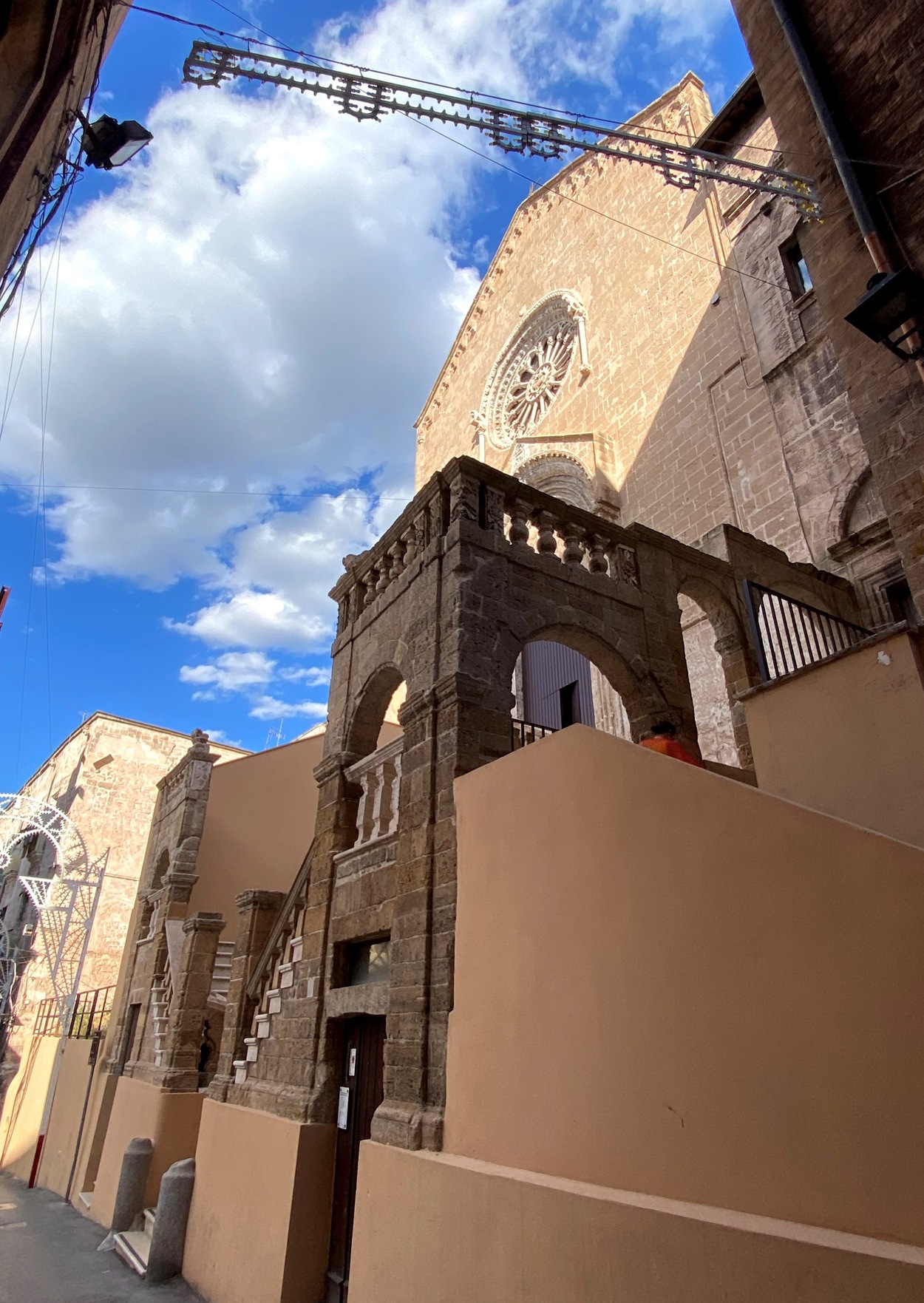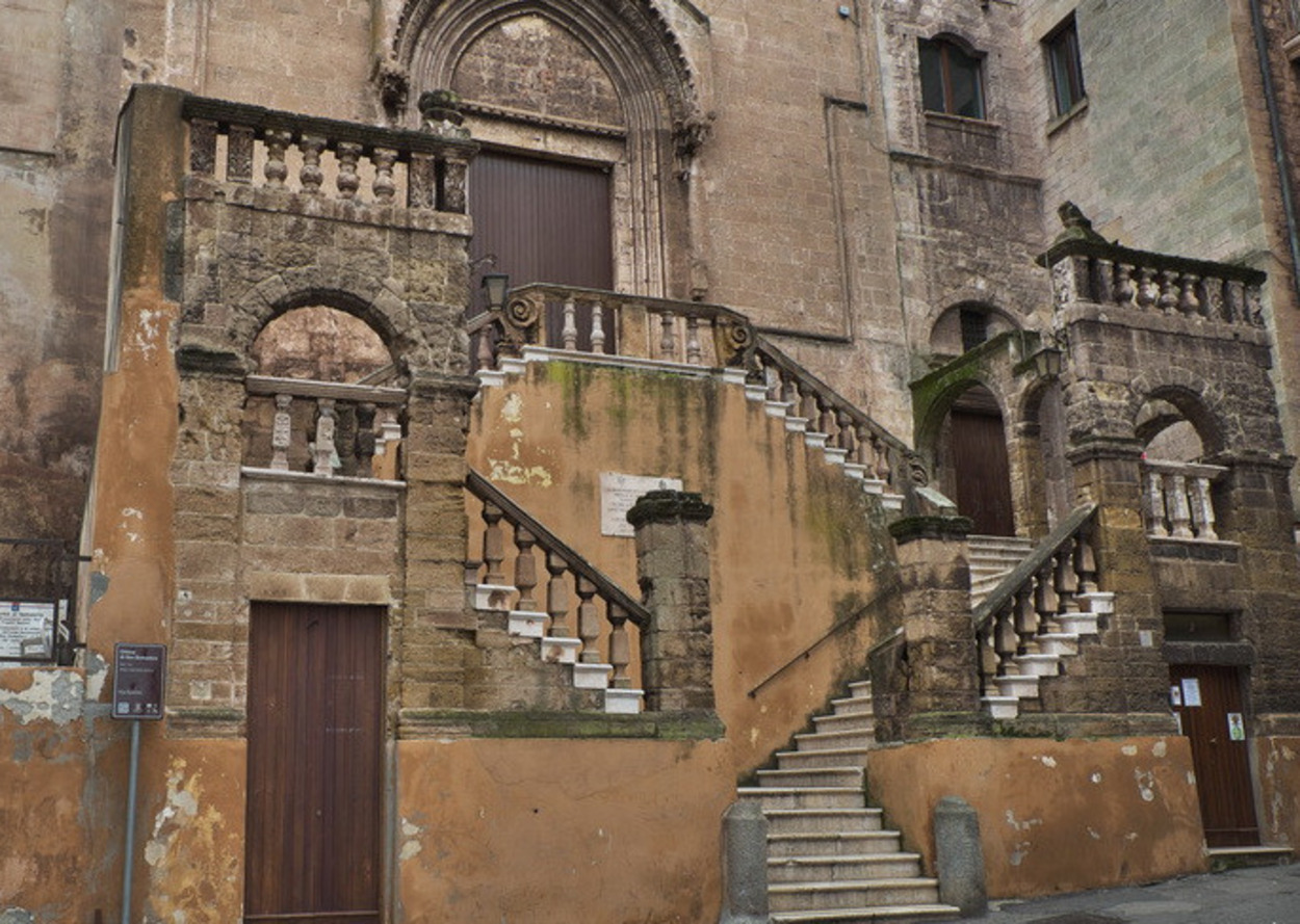 Церковь Сан-Доменико находится на одной из узких улочек старого города, 2 тыс лет назад тут было не так тесно и на некотором возвышении стоял древнегреческий храм, а позже византийская церковь Сан-Пьетро-Империале, на месте которой в 1302-1349 годах появилась нынешняя церковь. Конечно, с тех пор она несколько раз перестраивалась. Особенной ее приметой смело можно назвать неожиданную в таком узком городском пространстве двухмаршевую лестницу. Она поздняя, XVIII века. Перед нами анжуйская готика. На фасаде сохранились красивые детали XIV века, большое окно-роза и стрельчатый портал.