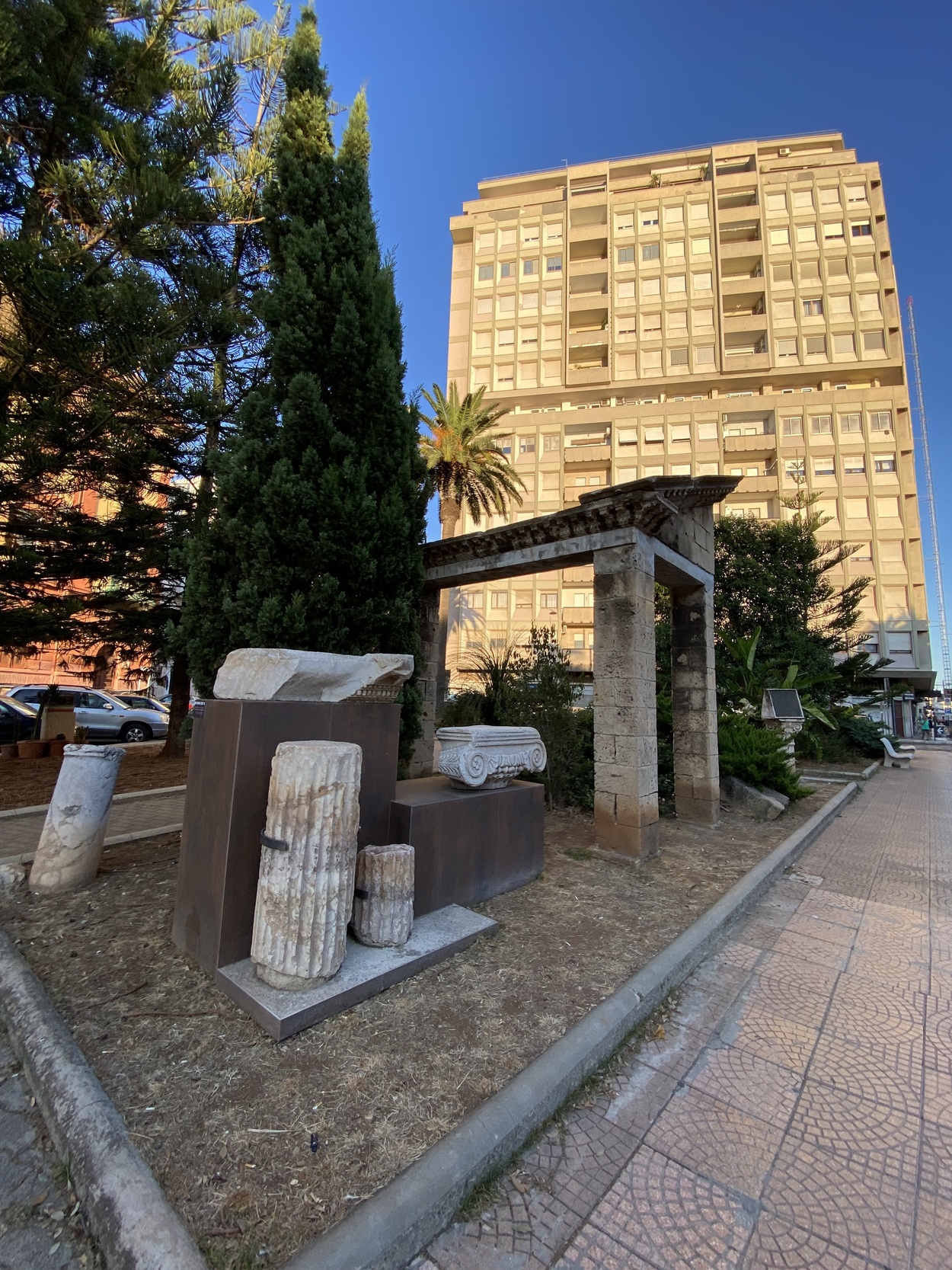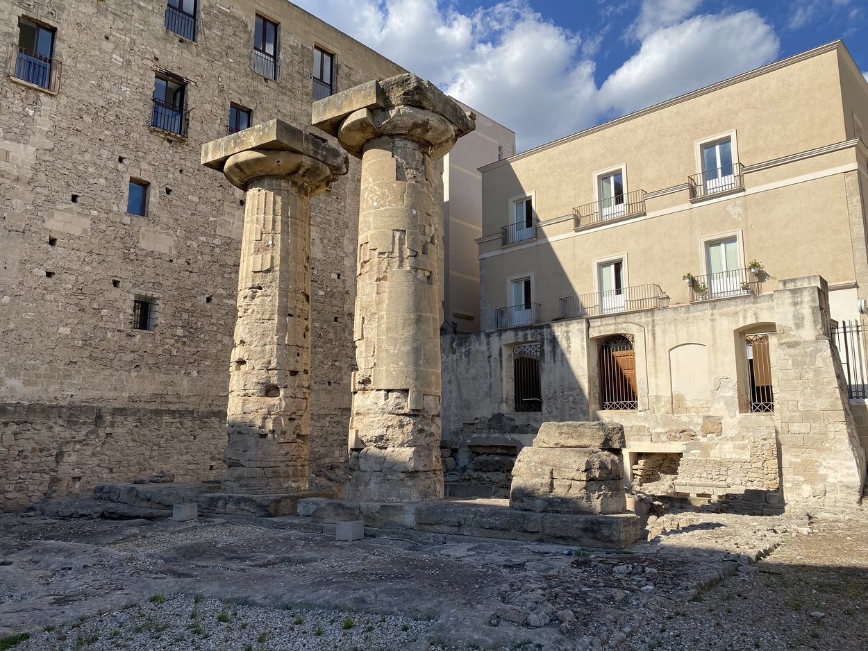 В небольшом скверике Caduti sul Lavoro в виде инсталляции выставлены античные архитектурные элементы Frammenti architettonici Greci e Romani, на табличке никаких пояснений, только слова Вергилия о Таранто. На самом деле это место раскопок, все найденное хранится в археологическом музее, который совершенно необходимо посетить, раз вы уж оказались здесь.