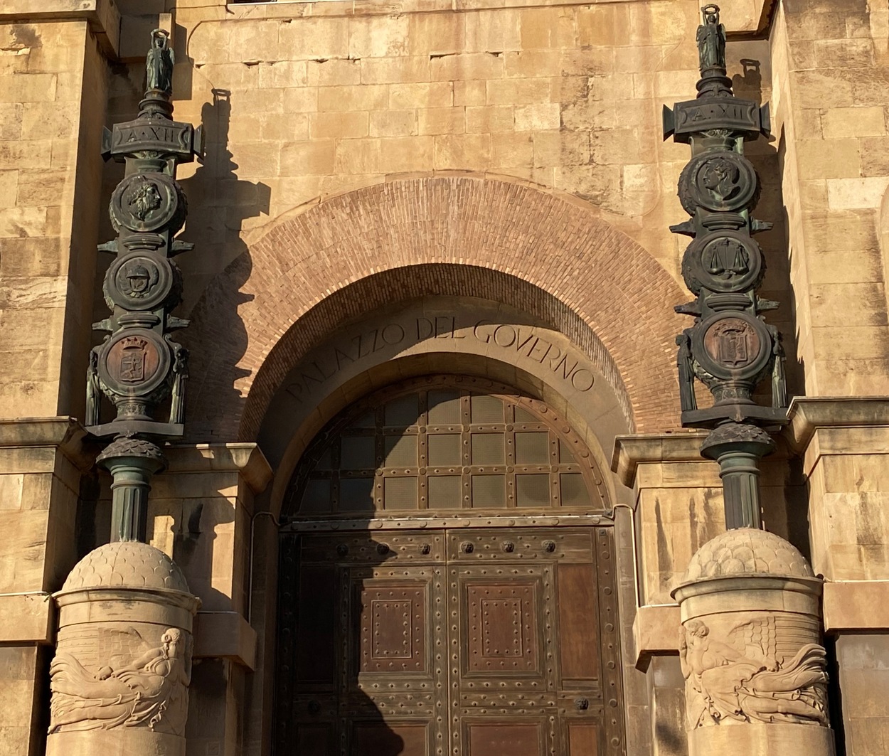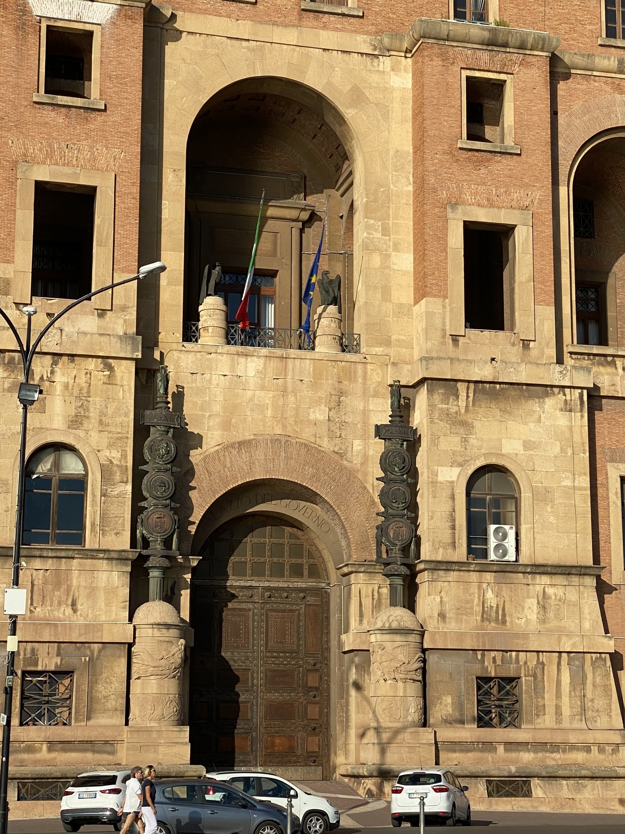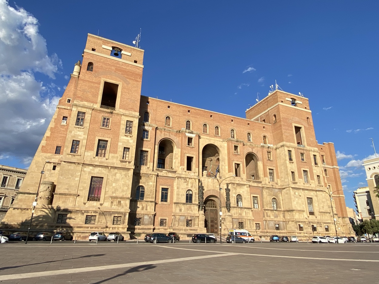 Palazzo del Governo - любопытный образец архитектуры 1930-40-х годов. Здание было построено за четыре года по проекту архитектора Армандо Бразини на месте снесенного для это цели театра Политеама Альгамбра. 7 сентября 1934 года Бенито Муссолини перед толпой горожан торжественно открыл дворец. Стены из красно-коричневого камня карпаро напоминают мощный римскоий каструм и перекликаются со зданиями морского арсенала Таранто.