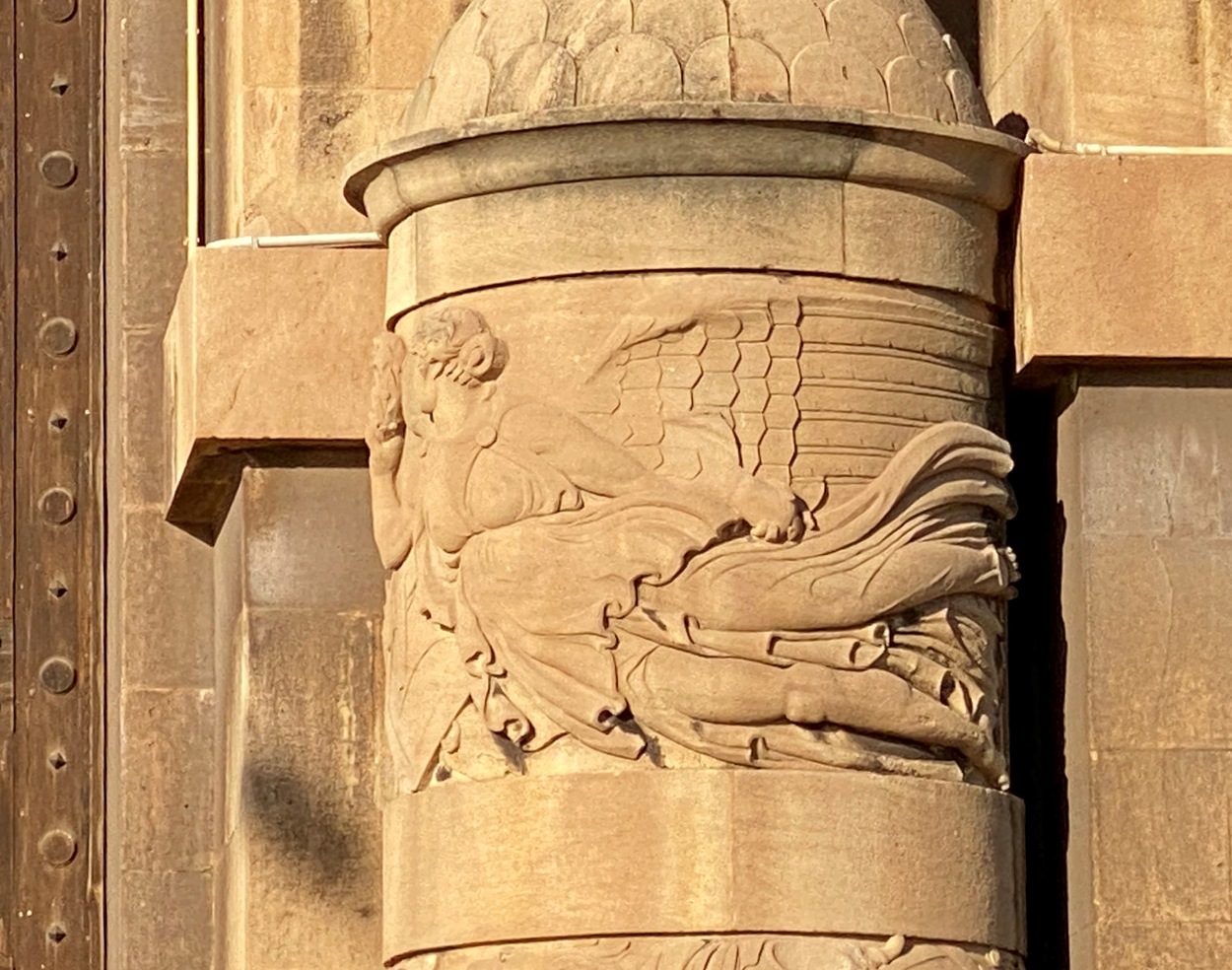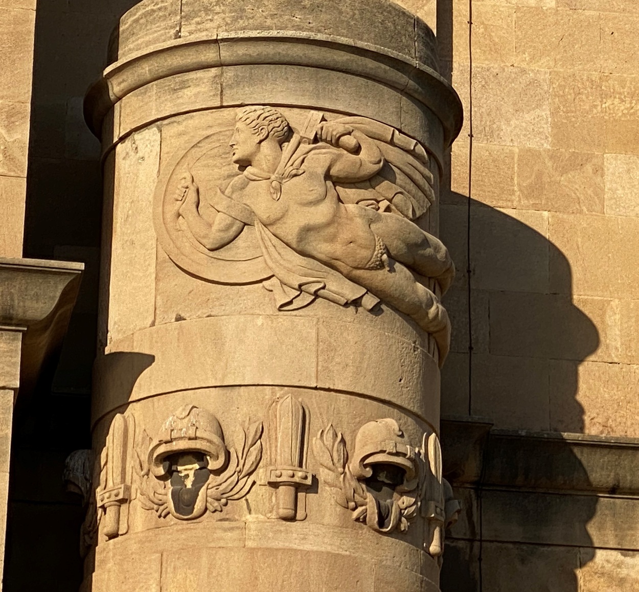 На фасаде - грандиозная лоджия с двумя бронзовыми орлами, по бокам главного входа - рельефные изображения гения Славы и воина, два гигантских римских трофея с гербами, на боковых башнях - два колокола.