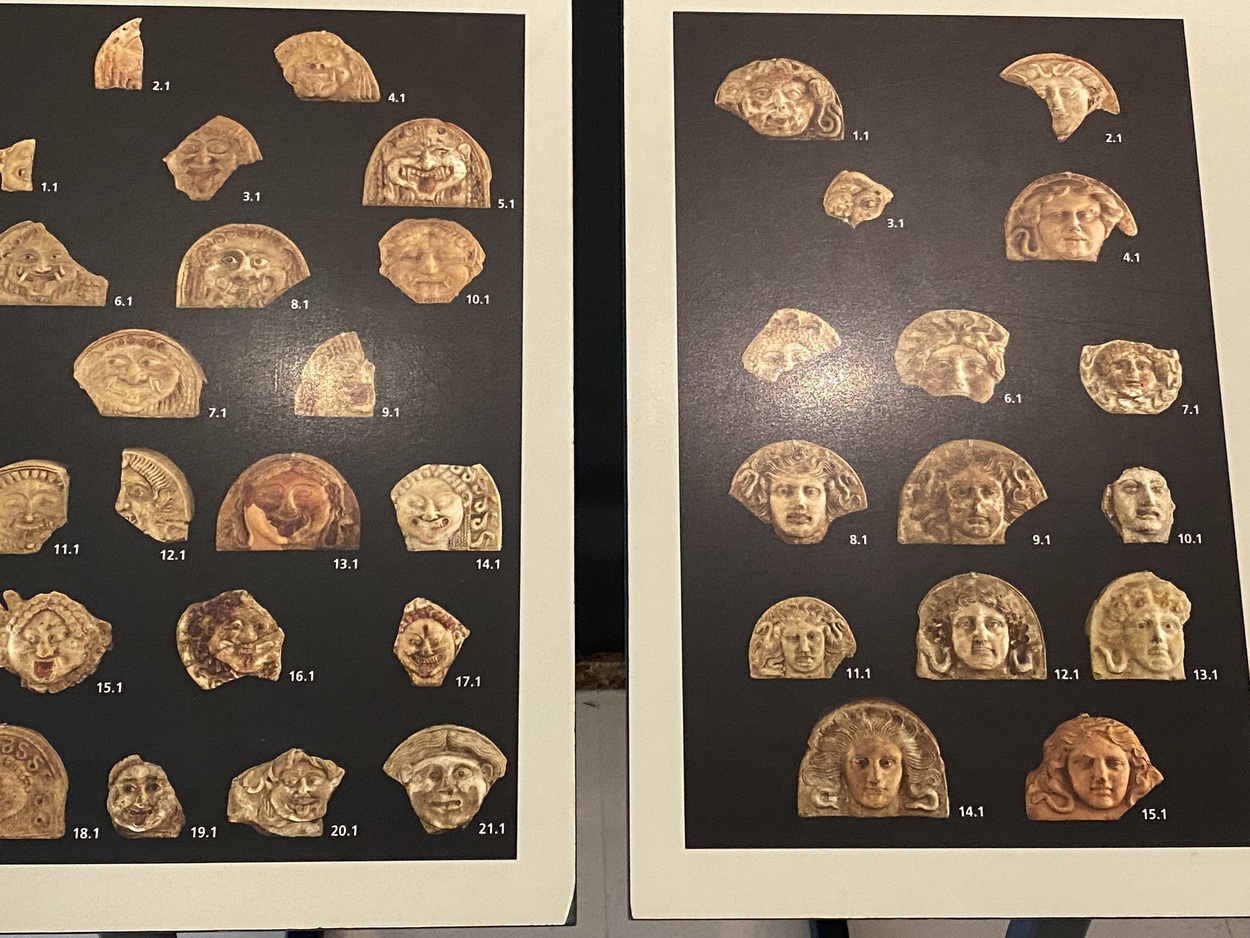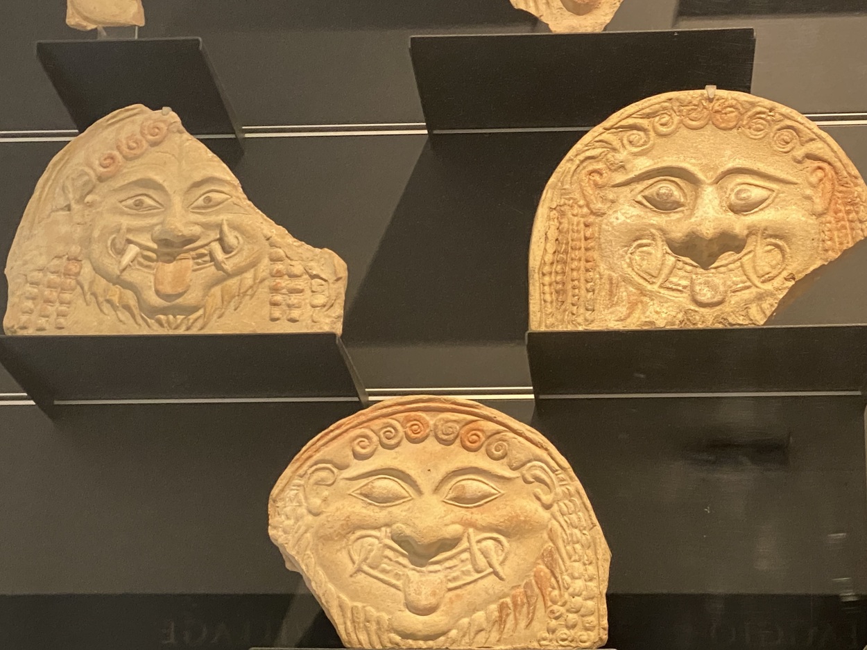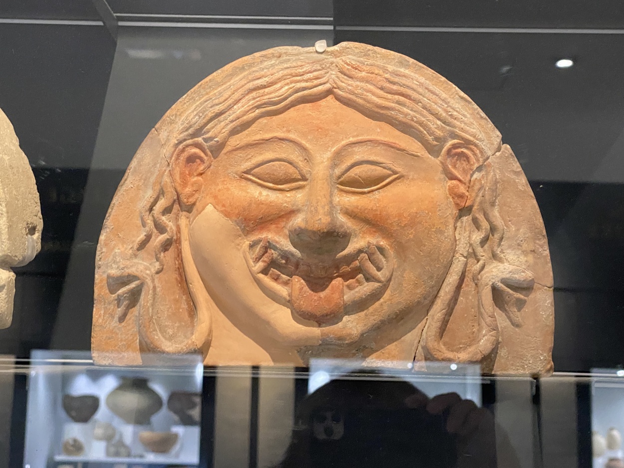 Наиболее распространённое изображение - голова Медузы Горгоны, которая символизировала защиту от зла. Самые древние изображения (конец VII - VI вв.до н.э.) передают наиболее ужасный ее облик, с широко раскрытыми глазами, глядящими в пустоту или вбок, с длинными клыками, высунутым языком и ужасающей улыбкой-ухмылкой.