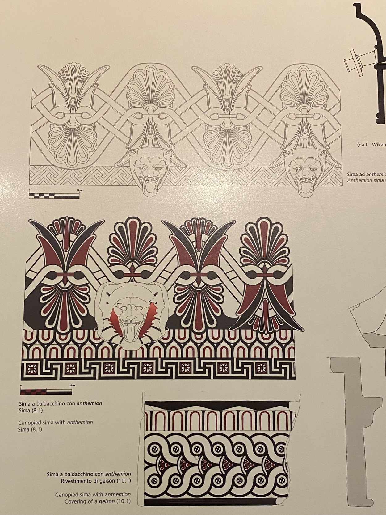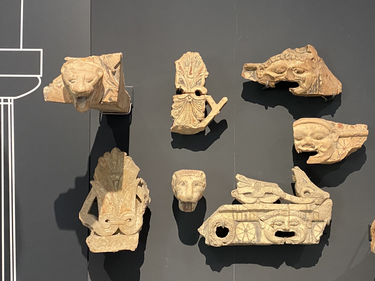 Кроме антефиксов, использовались и другие элементы, например, симы (желоба) или рамки с отверстиями, которые также направляли воду и служили украшением.
