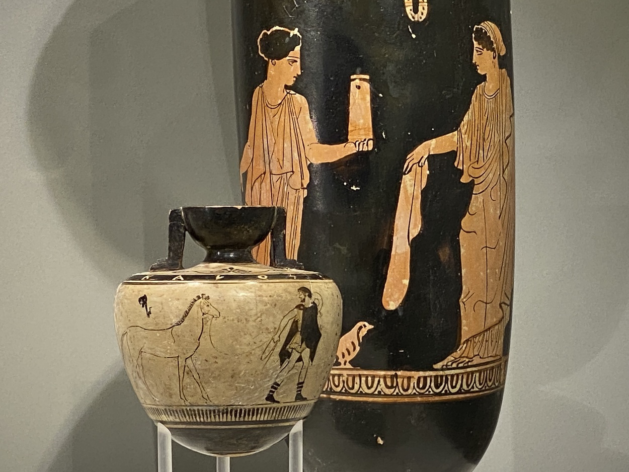 В музее великолепное собрание греческих краснофигурных, чернофигурных ваз. Встречаются и вазы с белым фоном.
